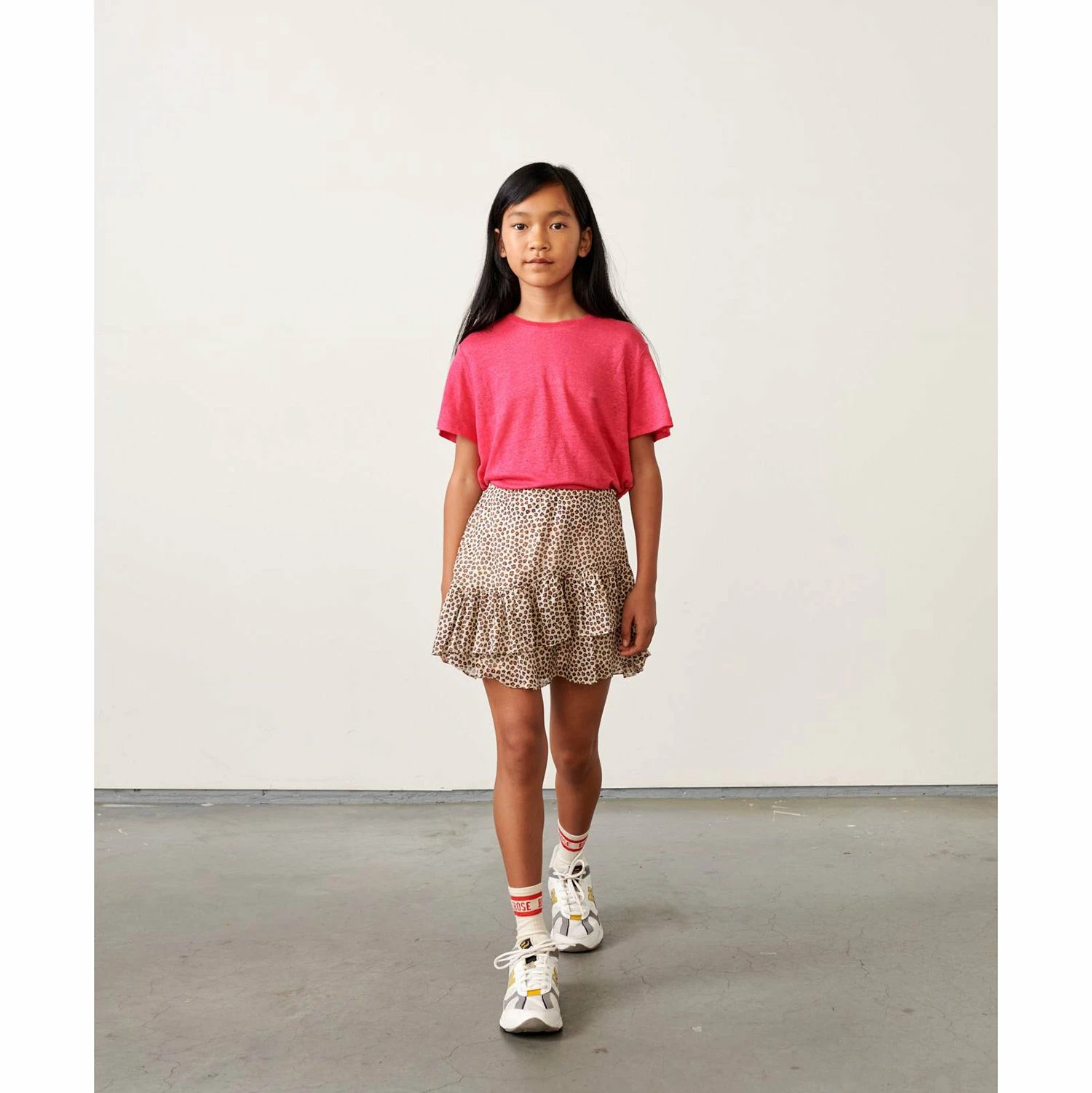 Get ready for the ALAISE skirt ’cause it’s likely to be on rotation all summer long! A ruffled version of the mini-skirt topped with a white and pink floral pattern! It’s feminine but not too serious, easy-going and easy to style in a flowy viscose that’ll move freely around the body. Sandals or sneakers, anything goes! Plus the ruffles add a dash of playfulness that screams fun fashion. Details: Ruffled mini skirt, floral print, Closed by an invisible side zip Composition: 100% viscose Colour: Display A