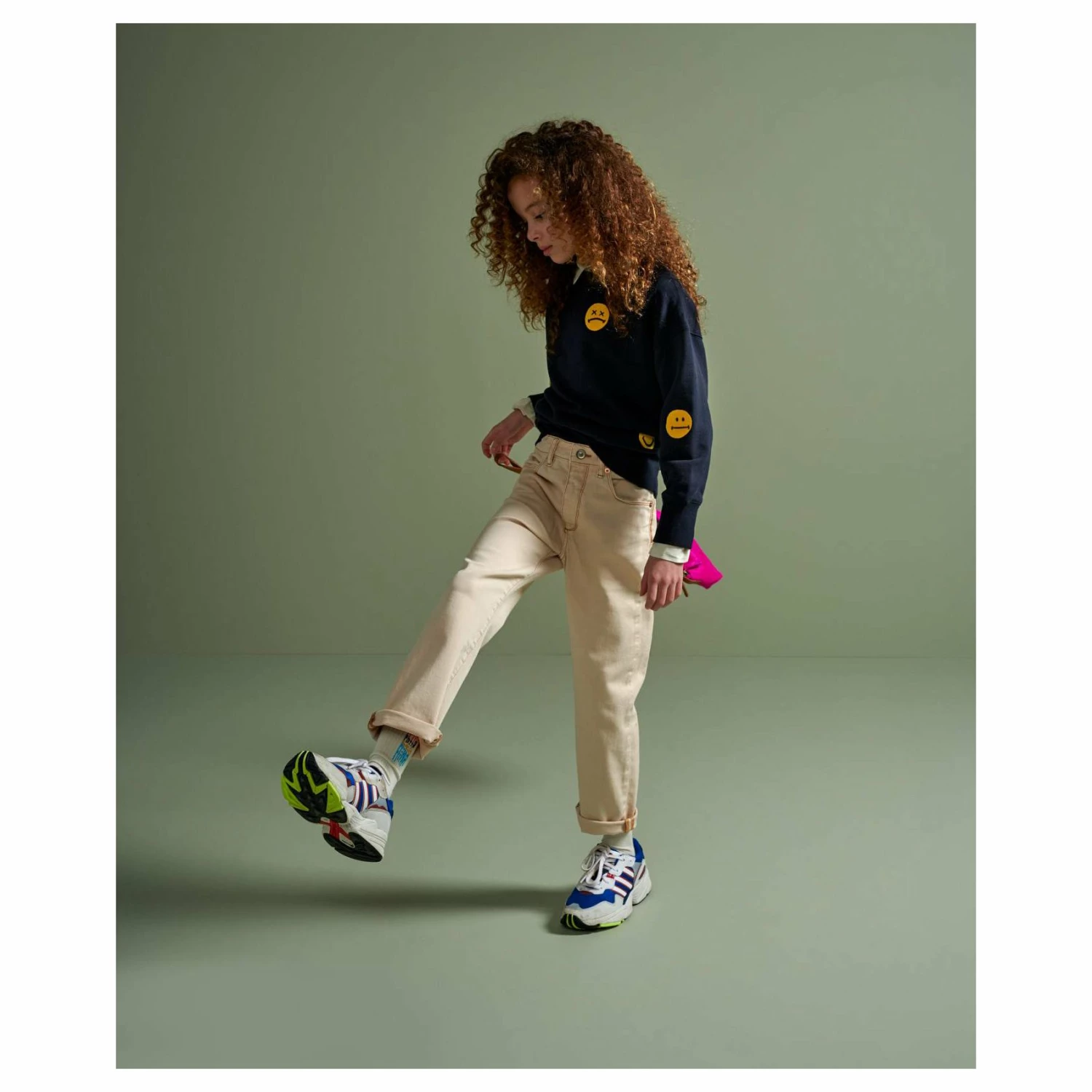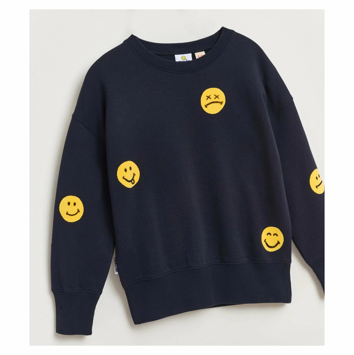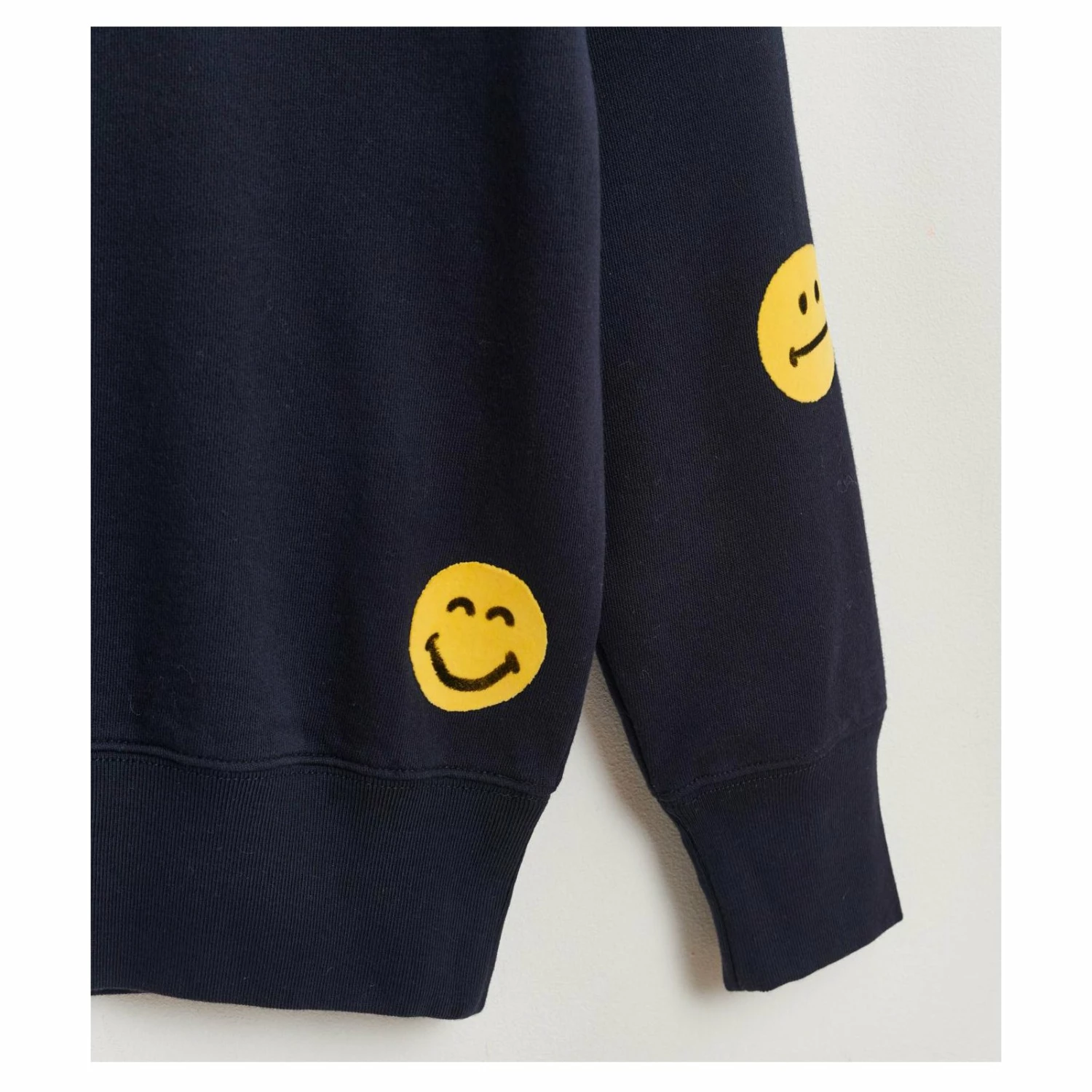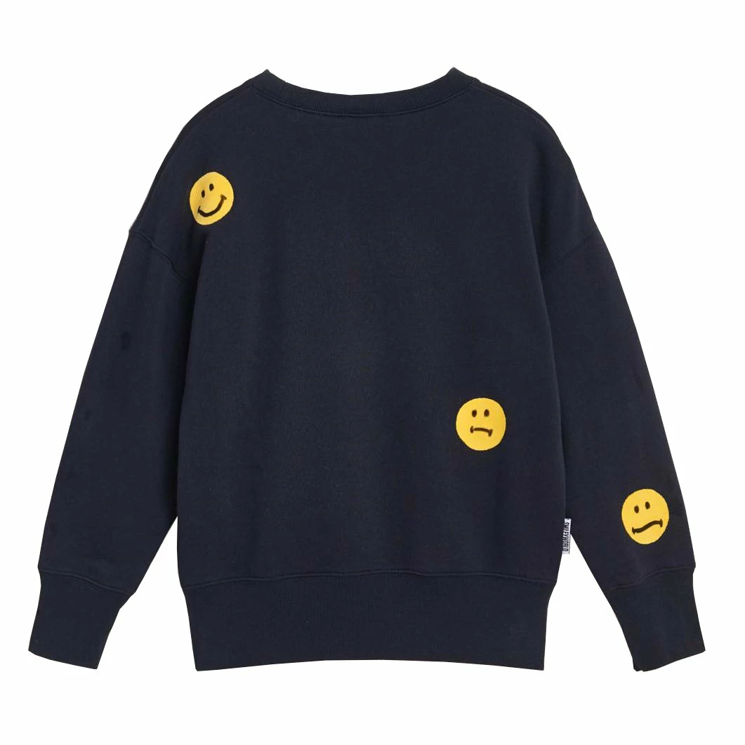 Fabrics: Cotton fleece Details: Long-sleeved navy sweater with a yellow smiley motif Composition: 100% Cotton Colour: America