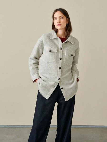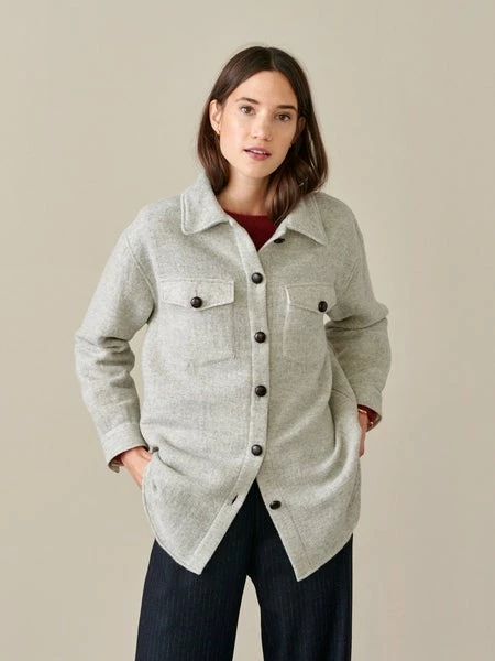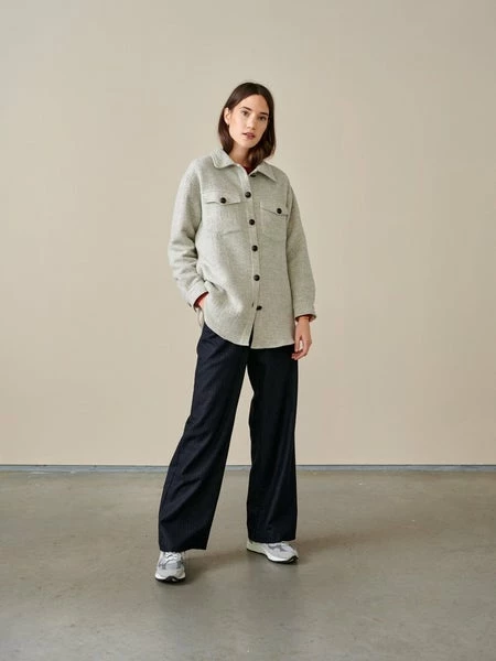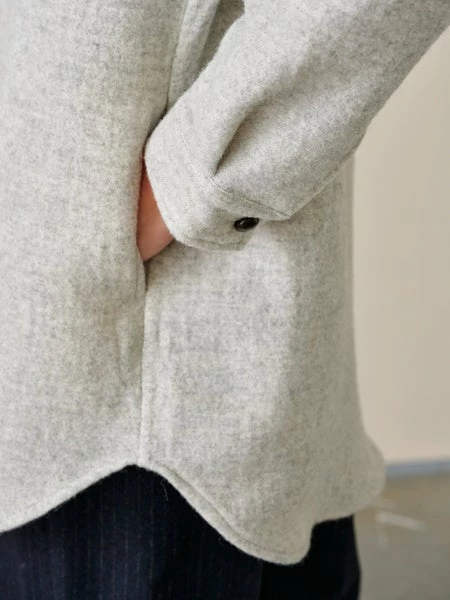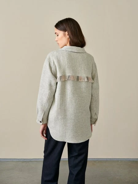 52% wool, 23% polyamide/nylon, 22% viscose, 3% other fibres Made in Europe Do not bleach, Do not tumble dry, Wash on delicate cycle Lightweight layers like this ARI overshirt become all the more essential as we move towards cooler days. Crafted in amazingly insulated light grey wool-blend, this year-round staple features beautiful details like the contrasting leather buttons and wild-west inspired back fringes. Oversize fit, dropped shoulders, patched and buttoned front pockets, and astutely concealed side pockets, it is the garment you’ll wear as a jacket in between season or under a coat as the mercury drops.