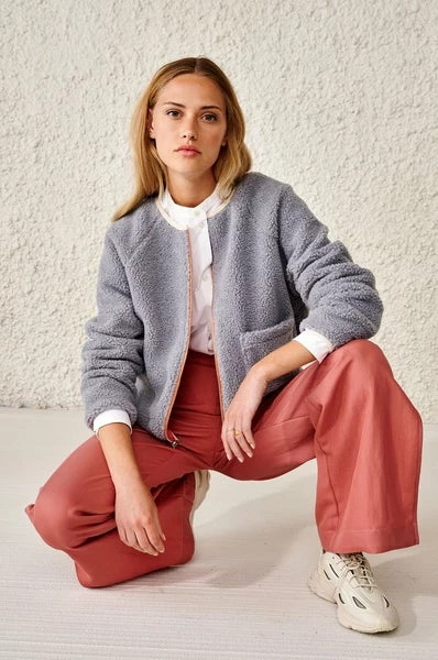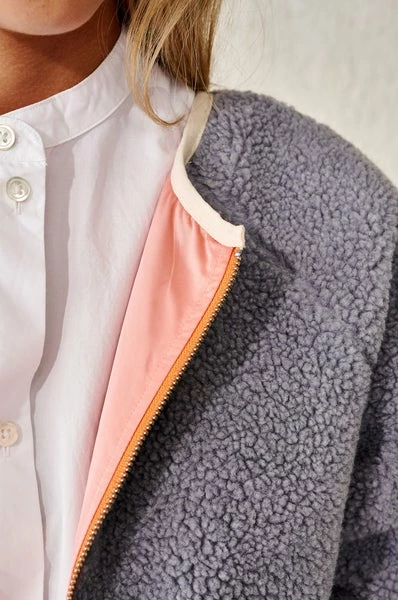New season, new colours. The reversible Belay jacket in a soft teddy fabric is now available in Heather Grey. Crafted from a blend of polyester and acrylic, it features one salmon pink side with just the right amount of shine for a satiny touch and one boucle side in grey for a cosy finish. Two for the price of one. Size Conversion: XXS/0, XS/1, S/2, M/3, L/4 0/XXS 1/XS 2/S 3/M Chest Pit to Pit (cm) 54 57 60 63 Sleeve Raglan (cm) 65 67 68 69 Full Length (cm) 51 54 56 56 80% Polyester, 20% Acrylic Machine wash separately at 30. Do not tumble dry. Do not dry clean. Made in China BW221323 T1486 V