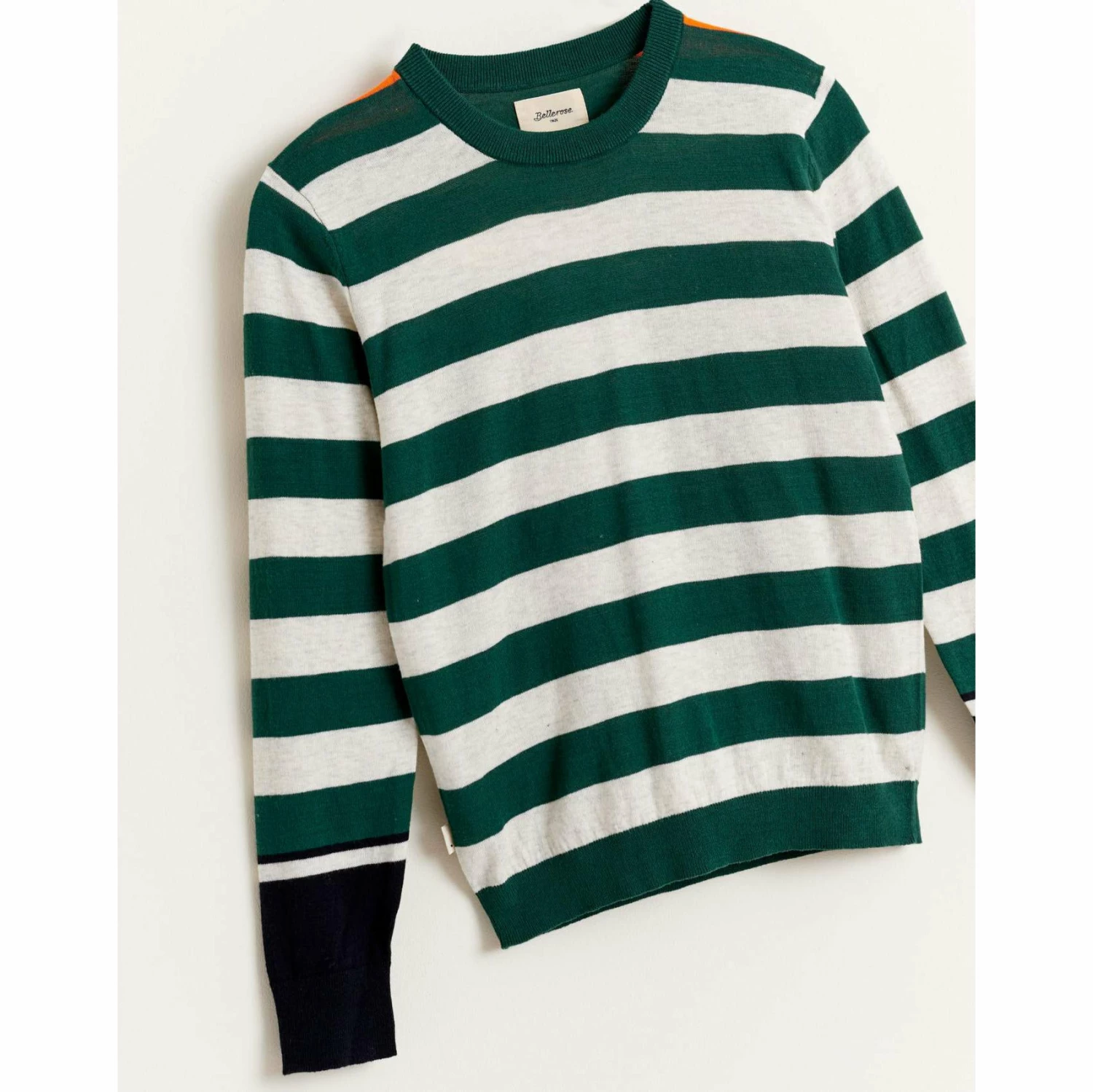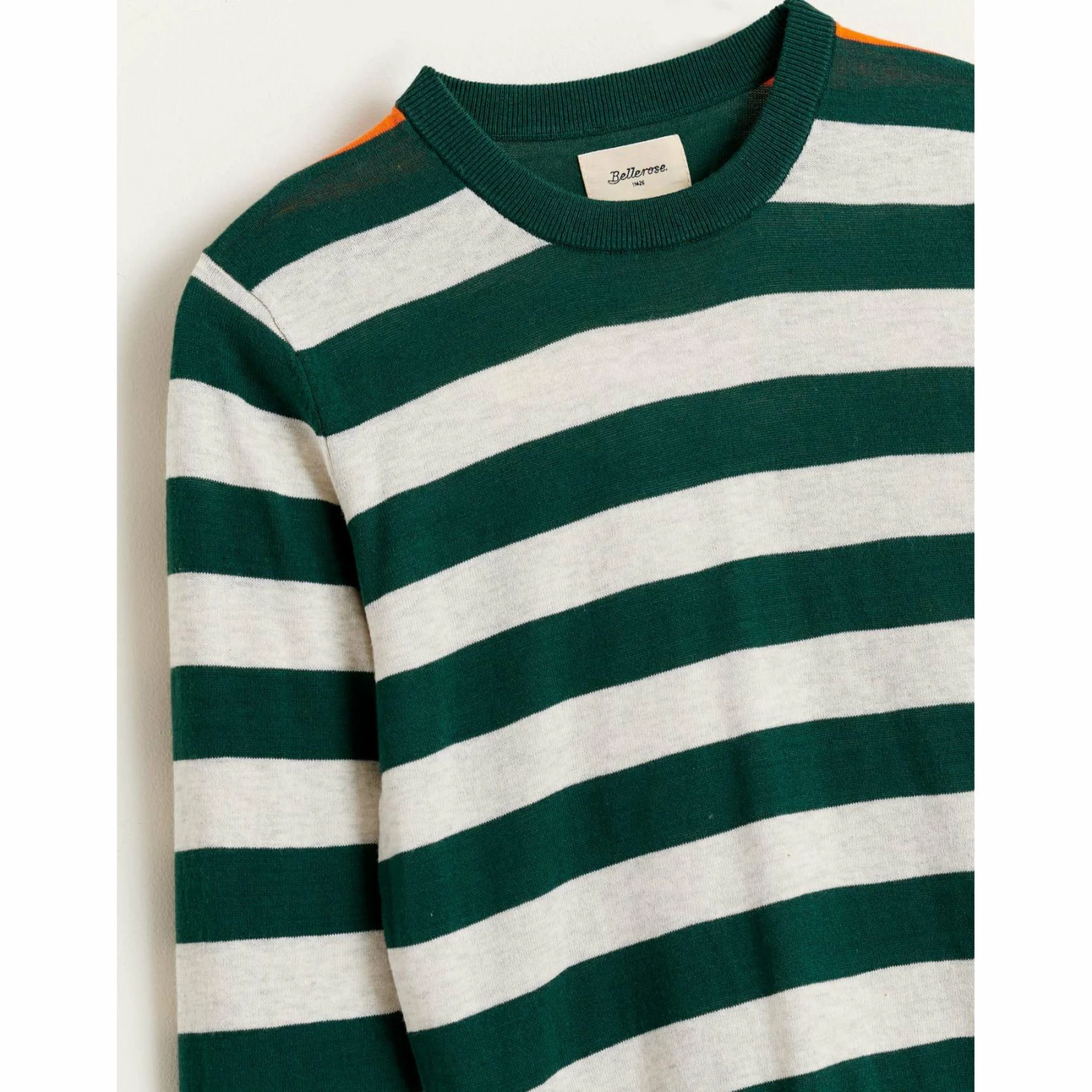 Knitted cotton sweatshirt Crewneck Long sleeves Relaxed fit Striped Contrast cuffs
