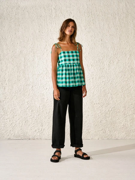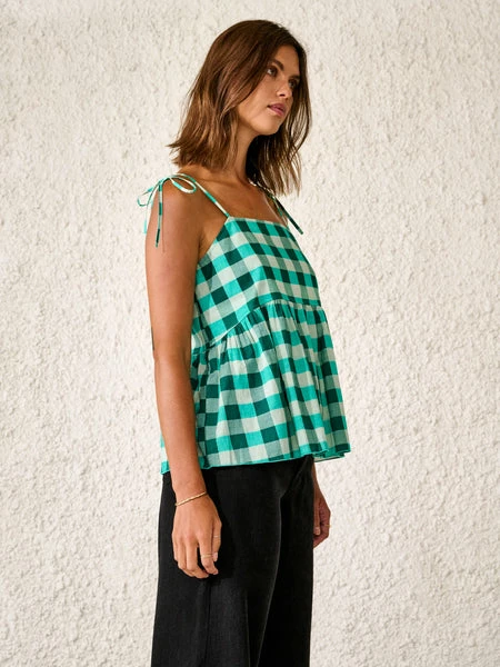 Simple design, the IMELDA top is enhanced with romantic details, making it an elevated summer staple. Crafted from pure cotton with an eye-catching tie and dye print, it features an empire waist, gathered pleats, and self-tie spaghetti straps. Romantic spaghetti strap blouse 100% cotton Empire waist Gathered pleats Self-tie straps CARE 100% cotton Made in India Machine wash at 30°C Do not bleach Do not tumble dry Iron at low temperature / Heat 110°C Do not dry clean