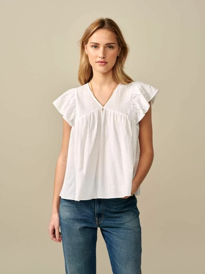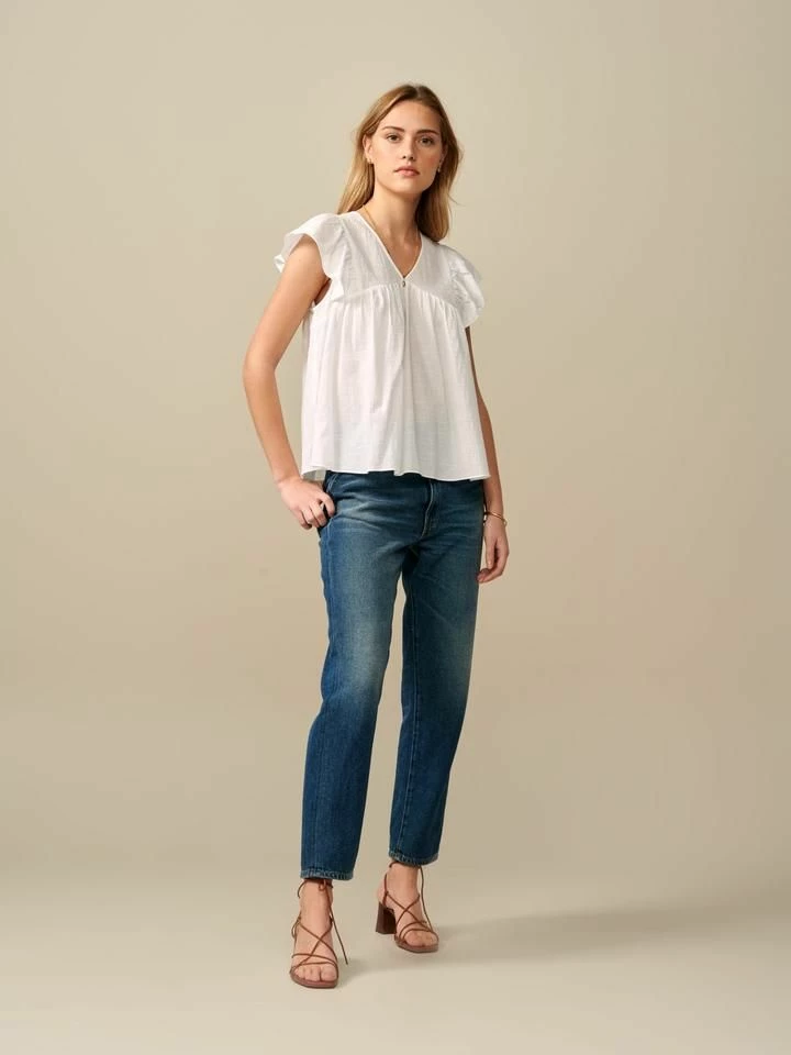 Con le sue maniche a cappuccio increspate, lo scollo a V e la parte anteriore completamente plissettata, la nostra camicetta HOURRA cattura l’essenza di un’estetica casual ma smaccatamente femminile. Realizzata in morbido cotone 100%, sarà perfetta per il tuo guardaroba del fine settimana. Indossala con i jeans boyfriend e un paio di espadrillas. – Camicetta con scollo a V – 100% cotone – Maniche a cappuccio arricciate