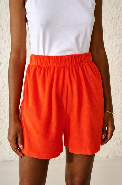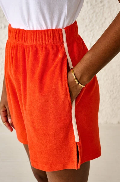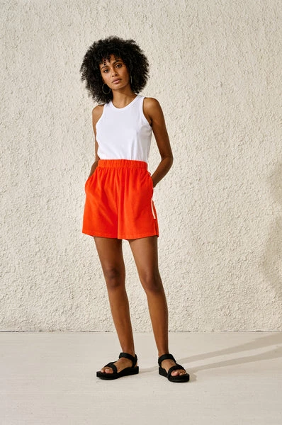 Opt for The Chania shorts for your off-duty and workout outfits. Crafted from an über soft terry cotton and modal blend, it features a vintage-inspired cut with an elasticated high rise, mid-thigh length with side slits, contrasting stripe, and concealed side pockets. The minimalist design means you can bring these shorts out year on year. – Vintage-inspired shorts – Cotton and modal blend – Elasticated waist – Contrasting side stripes – Side slits Size Conversion: 0/XXS, 1/XS, 2/S, 3/M, 4/L 0 1 2 3 4 Waist (cm) 31 33 34 37 38 Inside Leg (cm) 6 6 7 8 9 Total length (cm) 38 40 40 42 44 66% Cotton, 34% Modal Machine Wash at 30. Do not tumble dry. Made in Portugal BW221343 T1561 869