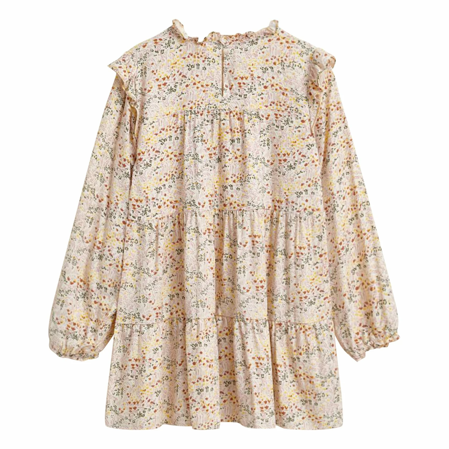 Fabrics: Viscose Canvas Details: Pale floral motif dress, Pleated details on the shoulders and the collar, Wrinkled collar, Above-knee length, Puffed sleeves, Elastic cuffs, Keyhole back. Composition: 100% Viscose. Colour: Combo A