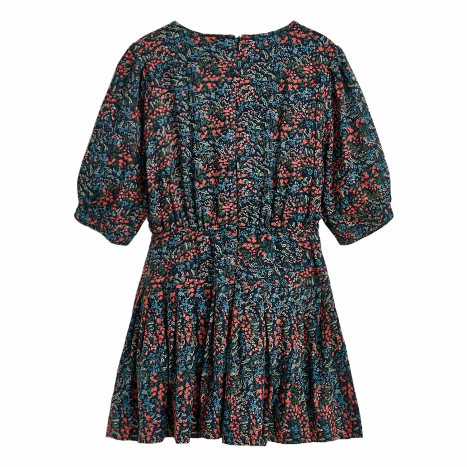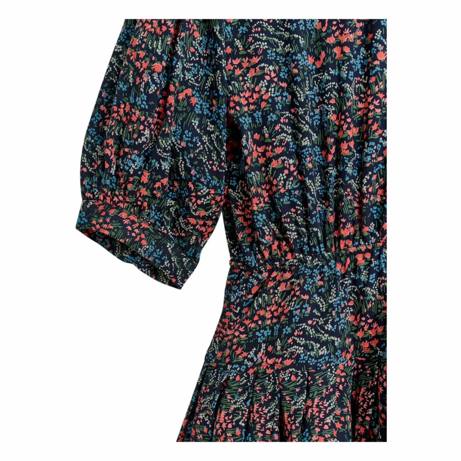 Fabrics: Viscose Canvas Details: Floral motif dress, Puffed sleeves, Outlined waist, Above the knee length, Round neckline, Bishop sleeves, Fitted waist, Pleats at the waist, Invisible zip in the back. Composition: 100% Viscose. Colour: Combo B