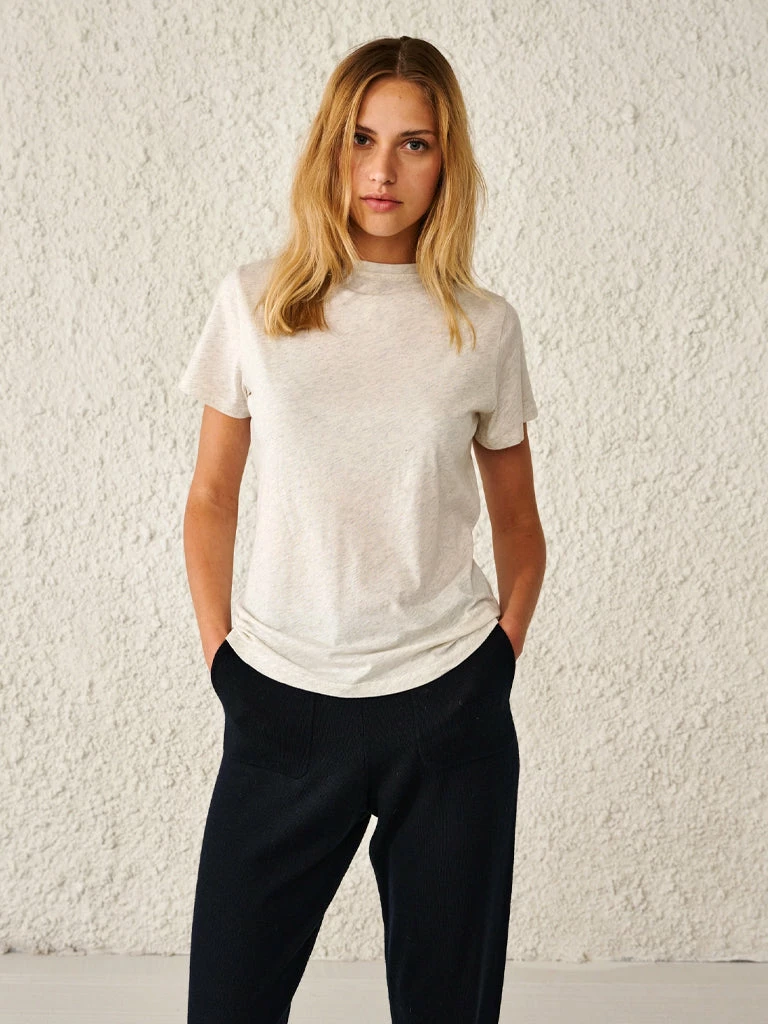 A Bellerose staple, the Covi T-Shirt offers a slightly looser fit, with a round neckline and short sleeves. Cut from 100% cotton, it has a light and slightly slouchy texture, making it an easy everyday wear. 100% cotton Round neckline Light and slouchy Classic t-shirt Relaxed fit