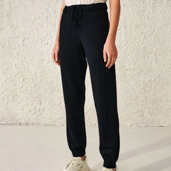 The Bellerose Delker merino Pants in Dark Navy are the ultimate day loungewear. We love the comfy merino wool fabric and relaxed fit, in a flattering and versatile dark navy. Featuring an elasticated waist with adjustable drawstring, cargo pockets and a tapered leg finished with a ribbed cuff. The perfect trousers for at home or out and about! 100% merino wool Hand wash