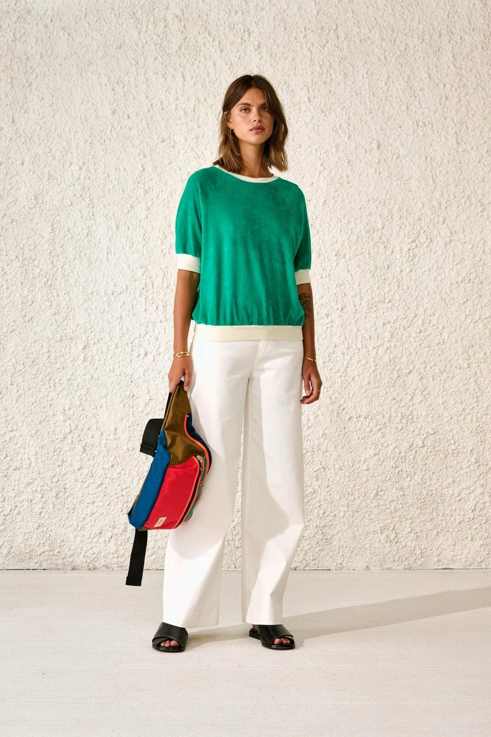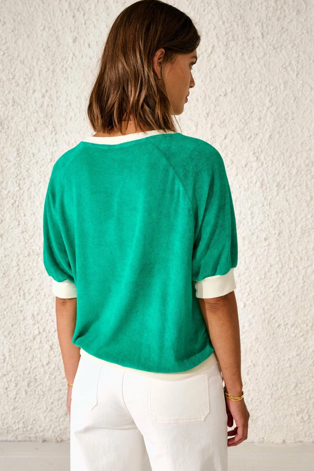 Chila Sweatshirt Emerald Short Sleeve Sweatshirt Light Terry Raglan Sleeves Contrasting Ribbed Edges 66% Cotton 34% Modal Made in Portugal Machine Wash 30 43067