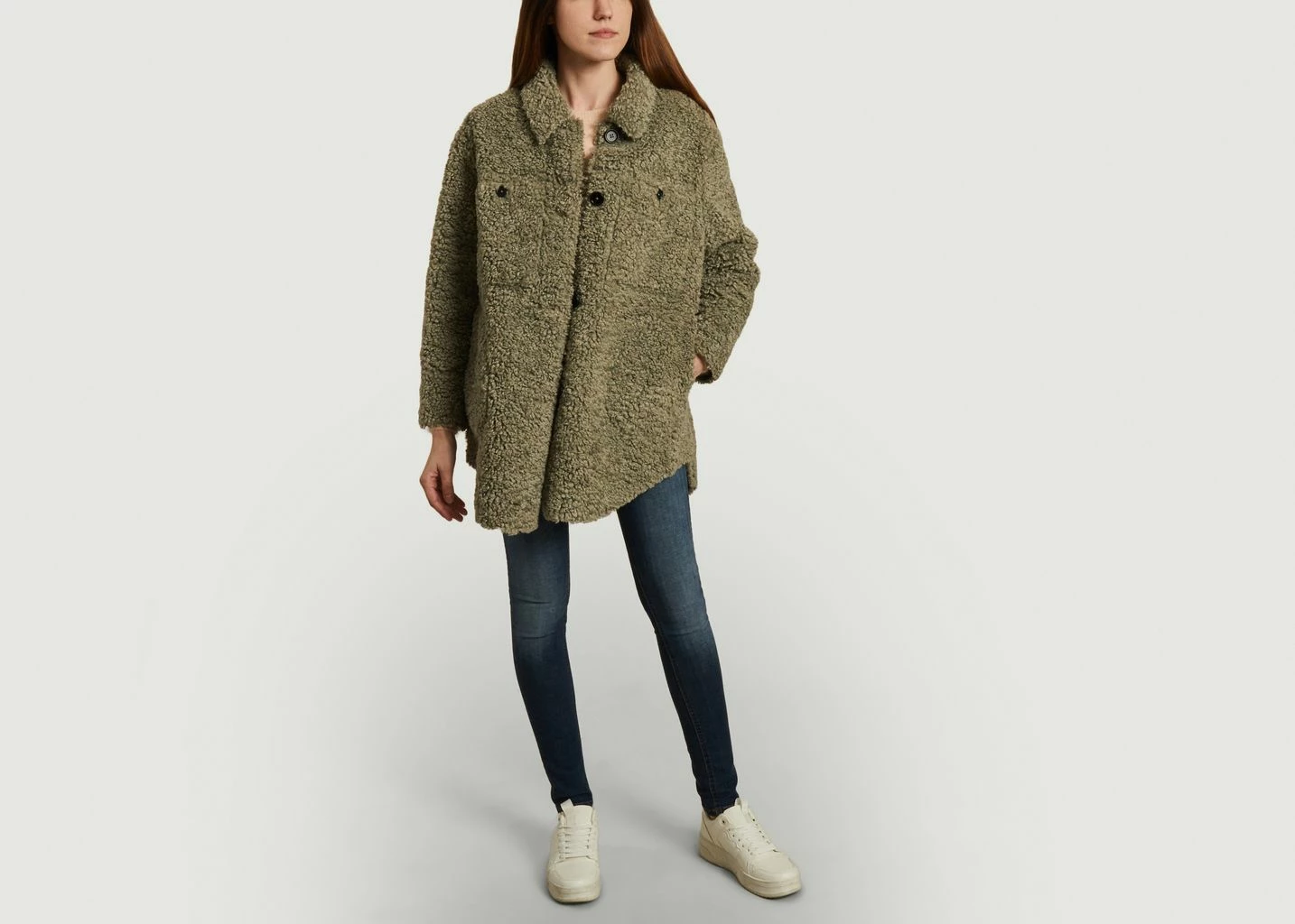 Coat made of polyester in green color. Classic cut, this coat is in a faux sheepskin style. It has long sleeves, a classic collar, side pockets and a front placket. Don’t hesitate to adopt this beautiful Emmet coat by Bellerose. We will easily wear it everyday with jeans and a pair of sneakers to complete a casual look.