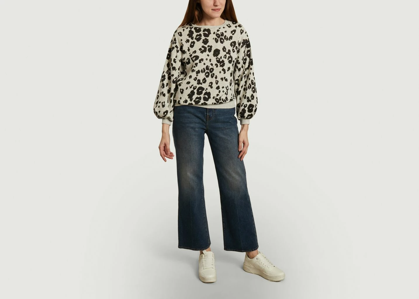 Fafi sweatshirt made from an eco-friendly blend of Lyocell and cotton. It offers a relaxed fit. Embellished with ribbed trims, puffed sleeves and a leopard print. Dare to be original with this leopard print sweatshirt. It gives your outfit a trendy style with a certain volume. Wear it with jeans and sneakers for a casual look.