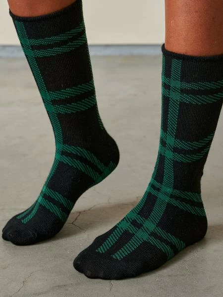 Classic socks with plaid pattern in black and green. Crafted from a lovely mix of acrylic and merinos, they’ll keep you warm for sure and remember, sometimes a detail makes all the difference. 38% acrylic, 27% wool merinos, 22% polyamide/nylon, 11% viscose, 2% elastane Made in France Machine wash at 30°C or lower, do not fill the drum, soft spinning, Do not bleach, Do not tumble dry, Do not iron, Dry clean