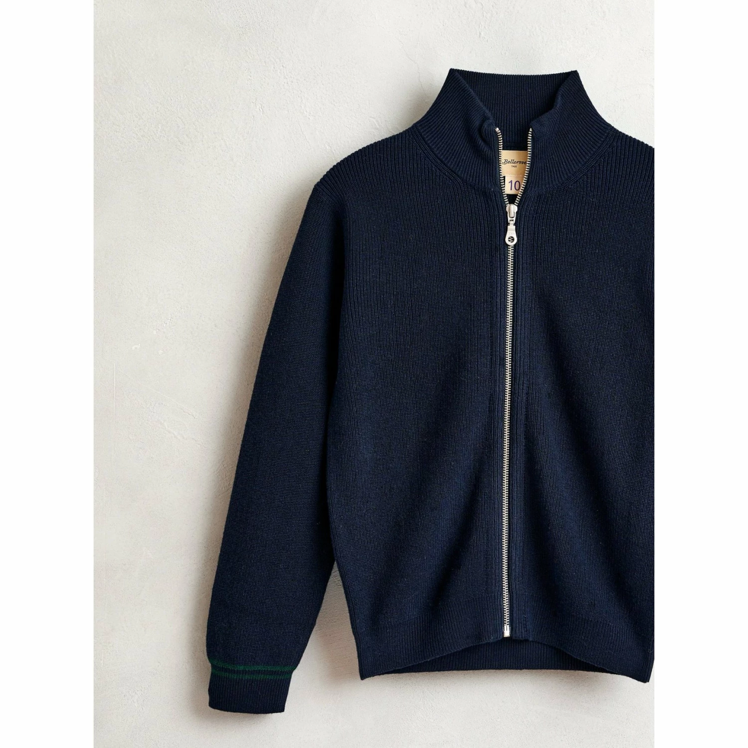 When you find the perfect mix between a bomber jacket and a trucker cardigan you know you have a winner! Metal zip front and straight cut, our GALGET is the extra layer he’ll never want to take off. Crafted in a premium blend of cotton and wool, it features a raised collar and adjusted cuffs with contrasting stripes giving it a timeless sportswear look that’s never going out of style. Fabric: 80% cotton, 20% wool Machine wash at 30°C or lower, Do not bleach, Do not tumble dry, Iron at low temperature / Heat 110°C, Dry clean, Water wash only, do not fill the drum, Dry flat Details: Classic trucker cardigan / Cotton and wool blend / Ribbed knit / Straight cut with metal front zip / Contrasting stripes around the wrists / Raised collar Colour: America