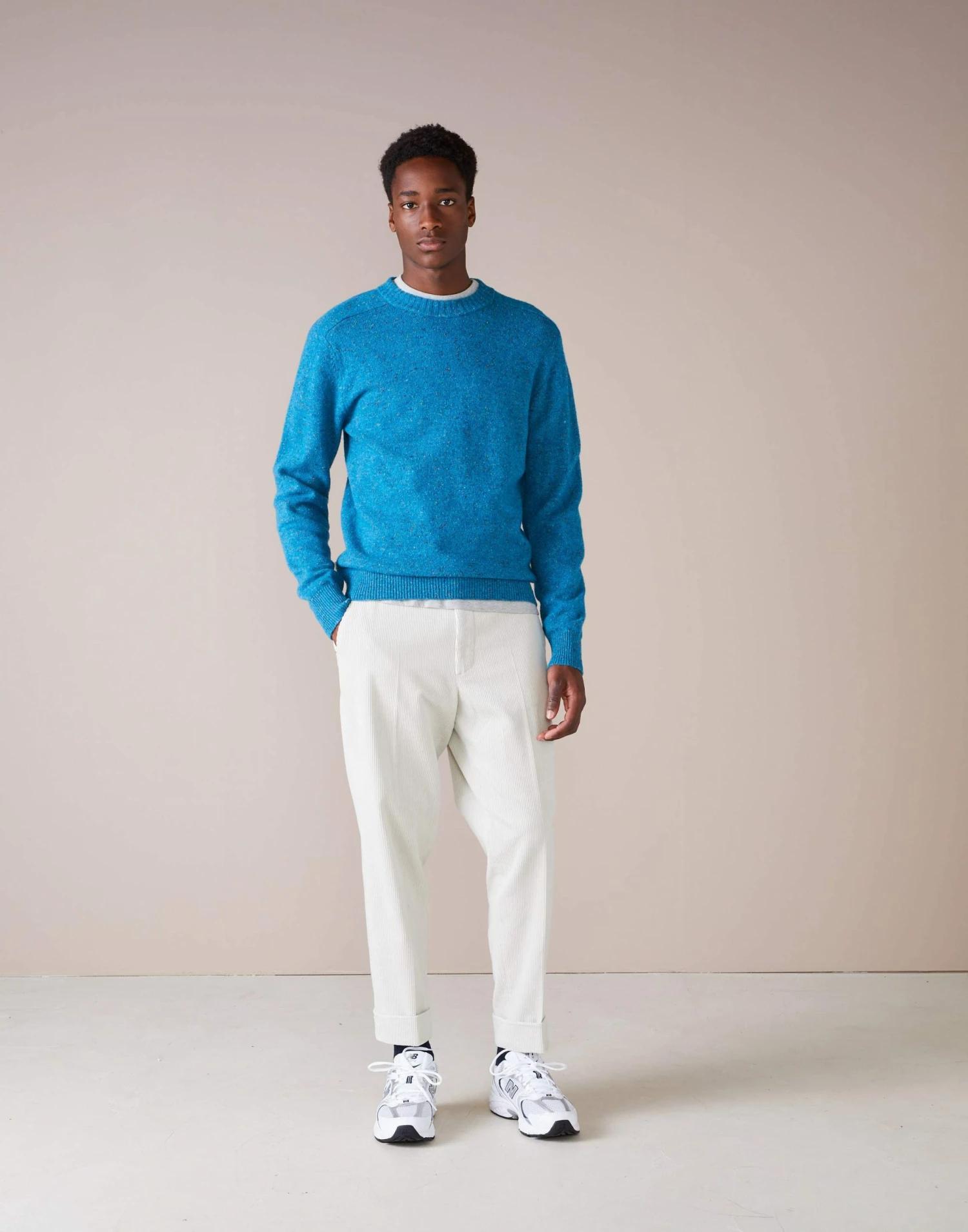 The classic crewneck wool blend sweater, done a little differently. If it’s not its easy, regular fit or durable wool blend fabric that’ll win you over, it’ll be the colorful neps all over this GASHA knit. Finished with hammer sleeves and a clean ribbed finish on collar, cuffs and hem. A perfect companion for those colder days, with a pair of fresh chinos or jeans.