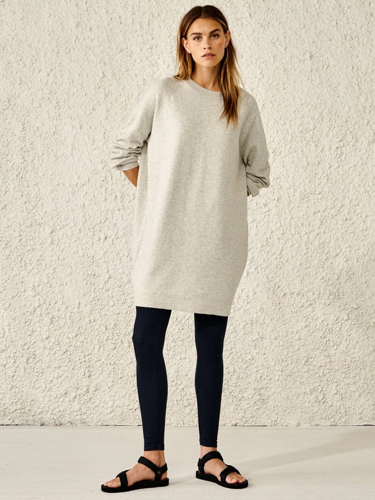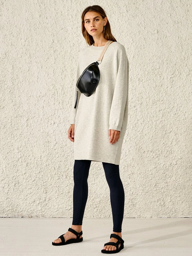 Casual and feminine all at once, the Gerob Dress from Bellerose is this seasons sweater dress. Finishing just above the knee, this dress is crafted from a cozy double knit blend of cotton and wool. Gerob features a relaxed oversized cut with raglan sleeves and a raw edge. 80% Cotton, 20% Wool Double knit sweater dress Above the knee Raglan sleeves Ribbed edges Machine wash at 30 degrees or lower Olivia is 174 cm tall and wears a size 8