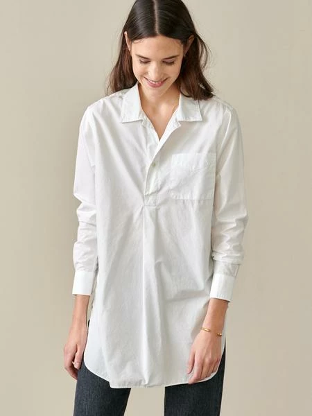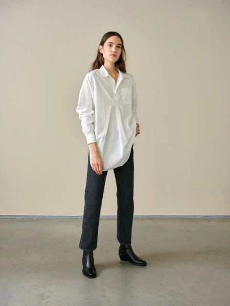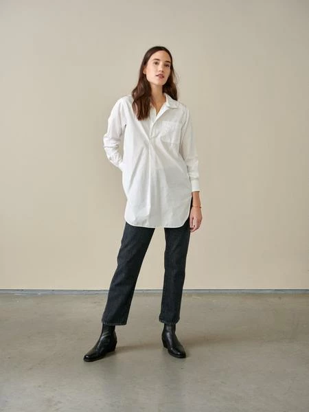 A crisp cotton poplin tunic is always a good idea to complete your mid-season edit and this one brings an elegant spin on an everyday essential. Crafted in a white 100% cotton, it features a classic collar, patch pocket, curved hemline, and mother-of-pearl buttons. Pair it with slim-fit denim, it’ll be the hero of your daytime casual-chic looks. We also have the Gigi Shirt in a light blue they call Blue Dew. Sizing:0 (XS)1 (S)2 (M)3 (L)4 (L) 100% cotton Made in Thailand Machine wash at 30°C or lower, do not fill the drum, soft spinning, Do not bleach, Tumble dry at 50°C or lower, Iron at low temperature / Heat 110°C, Do not dry clean