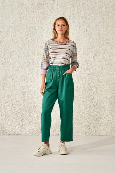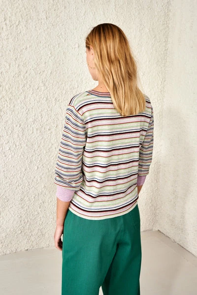 Round collar, relaxed cut, soft cotton & wool blend, and multicolor stripes, the GOPS combines a lot of our favorite things this season. This lime green, iris, and blue version is embellished with a few lurex stripes and calls for nothing more than a pair of raw boyfriend jeans. Tailored pants and polished loafers will work wonders as well if what you’re aiming for is a casual-chic look. 80% cotton, 12% wool, 5% viscose, 3% other fibers Made in China Machine wash at 30°C or lower, do not fill the drum Do not bleach Do not tumble dry Iron at low temperature / Heat 110°C Wash on delicate cycle Water wash only, delicate cycle, do not fill the drum Dry flat