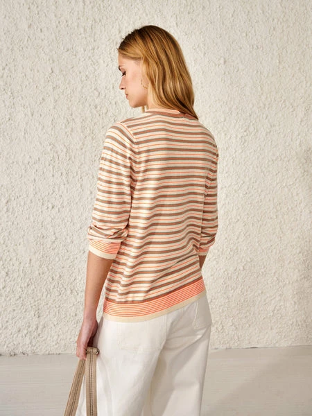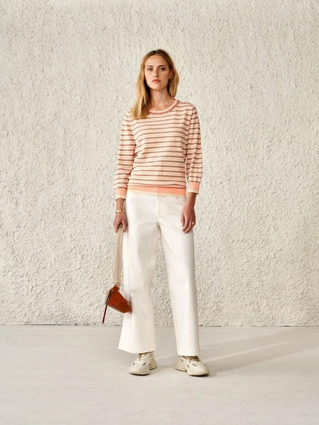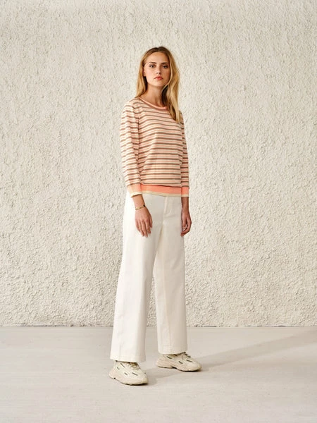 Round collar, relaxed cut, soft cotton & wool blend, and multicolour stripes, our GOPS combines a lot of our favorite things this season. This neon orange and ecru version calls for a pair of raw boyfriend jeans and your favourite sneakers. Sizing: 0 (XS) 1 (S) 2 (M) 3 (L) 4 (XL) 76% Cotton – 13 Polyester – 11% Wool Made in China Machine wash at 30°C or lower, do not fill the drum Do not bleach Do not Tumble dry Iron at low temperature/heat 110°C Wash on delicate cycle Dry flat
