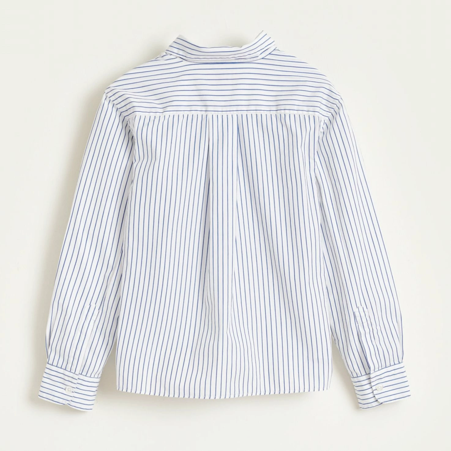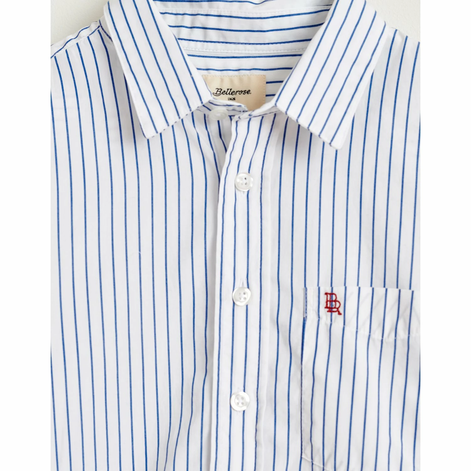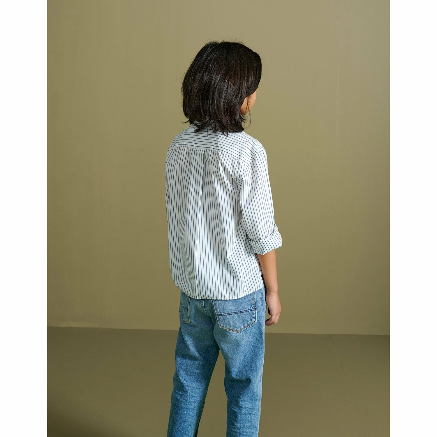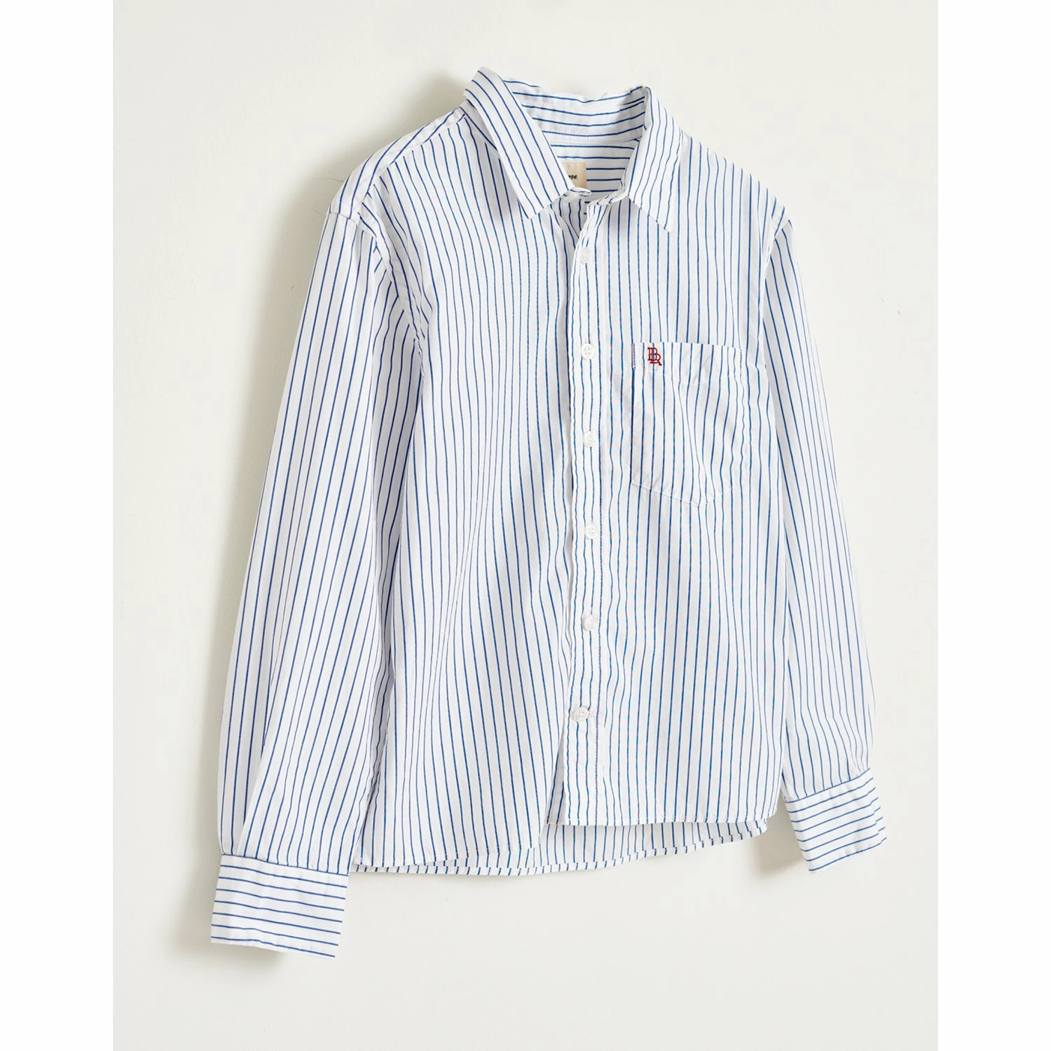 A classic pinstripe shirt is a must in any summer wardrobe. A garment so versatile it can go from casual to classy in the blink of an eye. Premium cotton poplin, straight cut and front patch pocket sporting our signature BLR embroidery. He’ll love to wear it open over a tee with the sleeves rolled up and ecru jeans or fatigues, but this cut can just as well be worn tucked into tailored pants. Fabrics: 100% cotton, Details: Classic shirt, Patch pocket, Box pleat in the back, Tiny BLR embroidery on the pocket Colour: Stripe