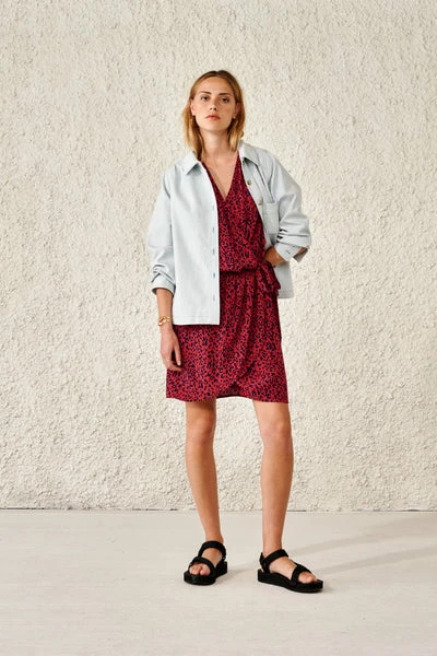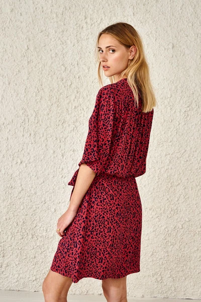 This style is packed with feminine chic vibes. Defined by a tulip hem, self-tie belt, and pagoda sleeve, and crafted in flowy 100% viscose for a comfortable and flowy feel. Wear yours with over-the-knee boots in early spring or strappy sandals come summer. 100% viscose Machine wash at 30°C or lower, low bleach allowed, do not fill the drum, delicate spinning Do not bleach Tumble dry at 50°C or lower Iron at low temperature / Heat 110°C Dry clean