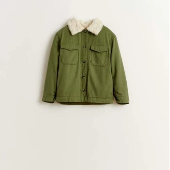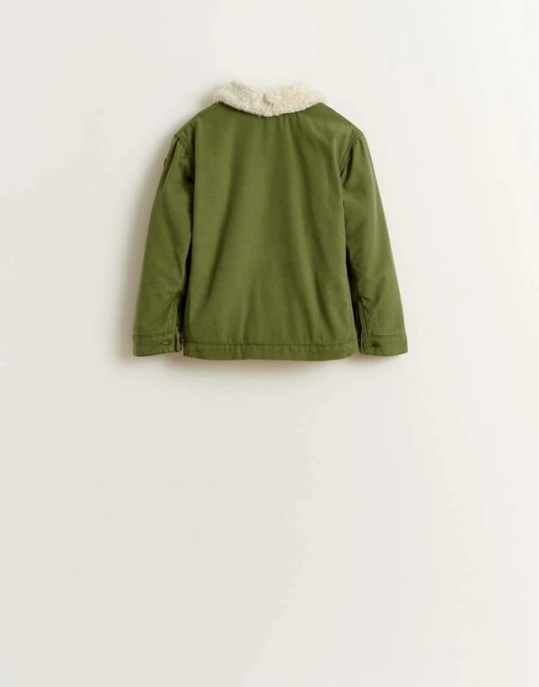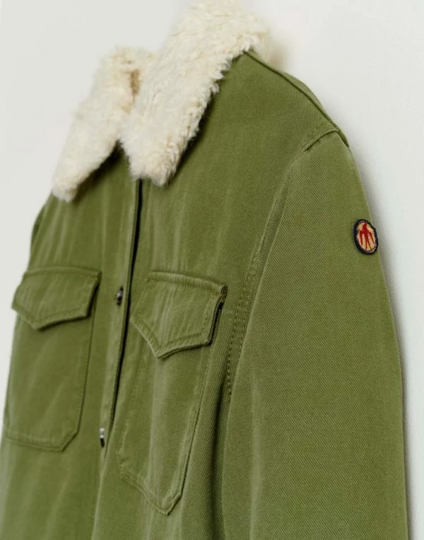 Jacket with faux fur collar with military inspiration. Soft stuffed lining. Two pockets on the back.
