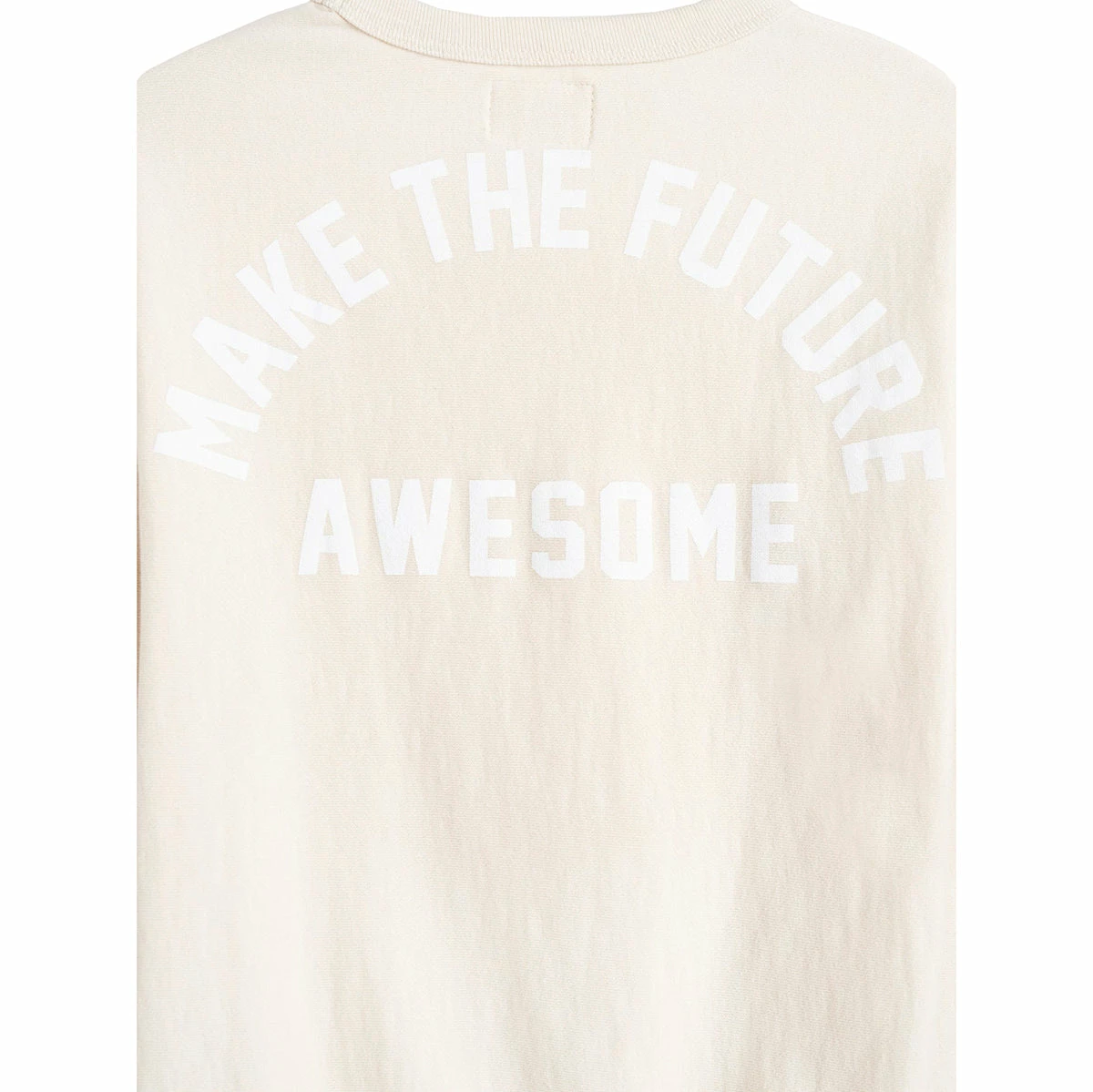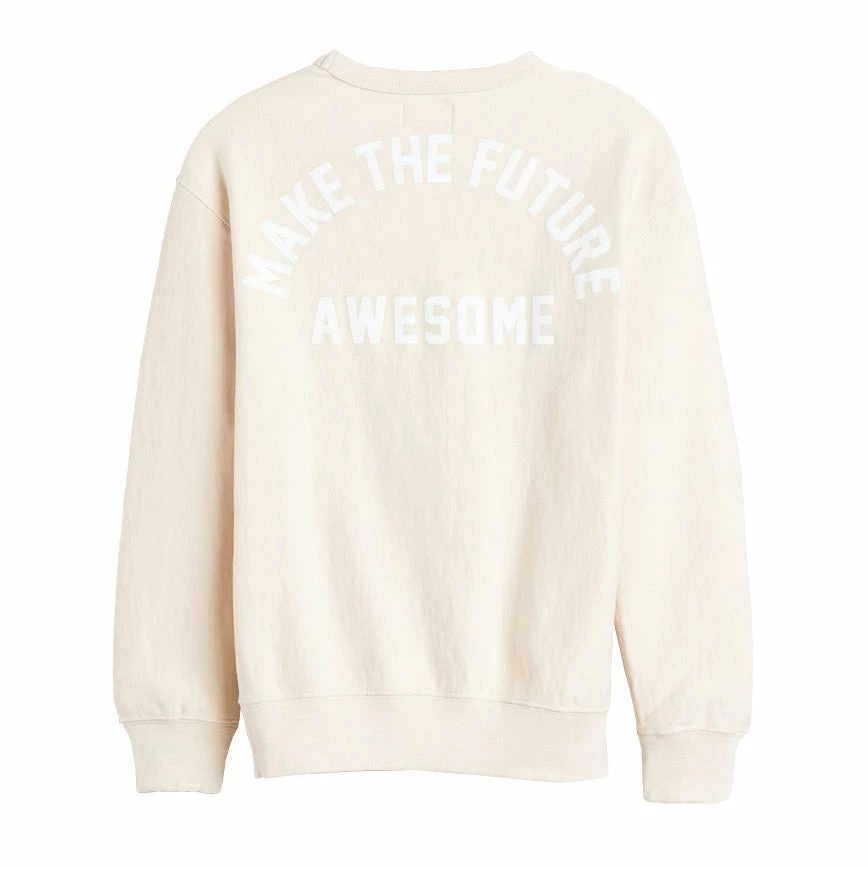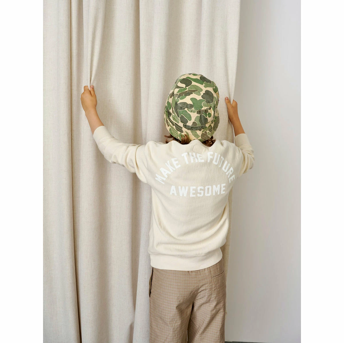 Take the wave and make the future awesome. Quite the statement from our Fago sweatshirt from Bellerose. Like any good sweatshirt, it’s cut in soft brushed cotton fleece and features a crew neck and ribbed details. Its paired back design is enhanced by a small ‘blue wave’ badge on the front and a positive print in tone-on-tone lettering in the back. A standout style he’ll enjoy day-in and day-out! Details: Classic crewneck sweatshirt | Relaxed cut | Ribbed edges | Small blue wave badge on the front and Positive message in the back Colour: Swan Composition: 100% cotton Care details: Machine wash at 30°C or lower | Do not bleach | Do not tumble dry | Iron at low temperature / Heat 110°C | Do not dry clean
