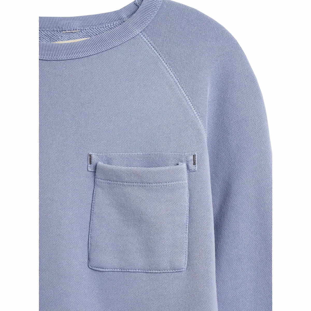The classic sweatshirt becomes that much more practical with the addition of a patched pocket. Timeless and comfortable, the Fiuk sweatshirt from Bellerose features raglan sleeves, ribbed edges, and a crew neckline. It is crafted in organic cotton fleece and comes in bright colors he’ll love to wear all season long. Details: Classic sweatshirt | Crew neck | Raglan sleeve | Ribbed details | Matching grosgrain on the pocket Colour: Drizzle Composition: 100% organic cotton Care details: Machine wash at 30°C or lower | Do not bleach | Do not tumble dry | Iron at low temperature / Heat 110°C | Do not dry clean