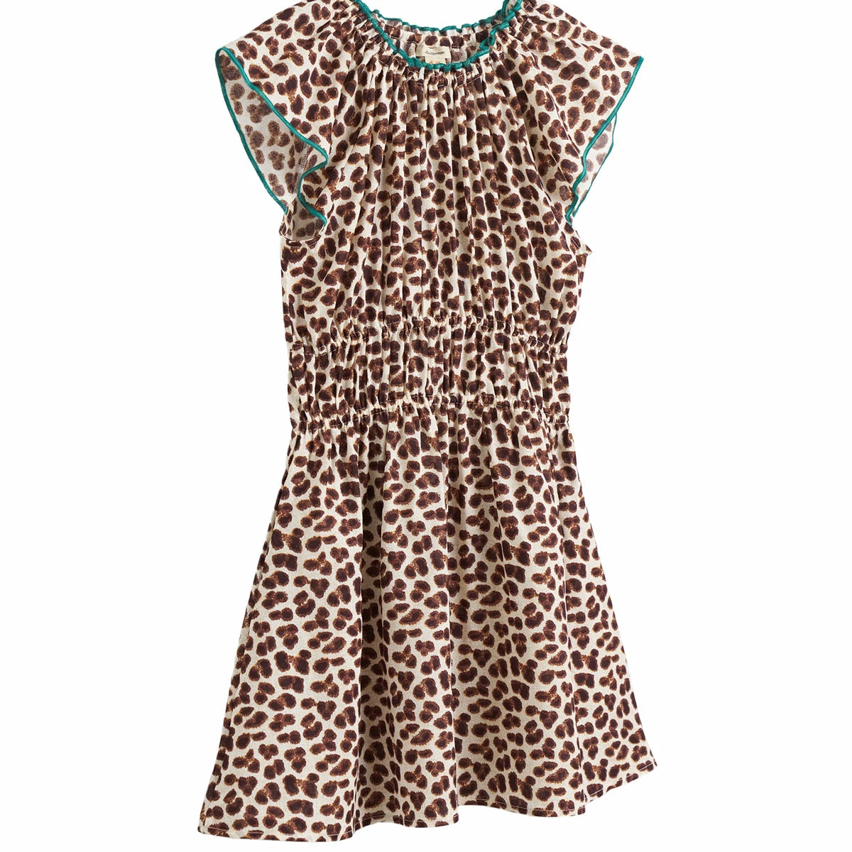 A flowy mini dress for balmy summer days. With its leopard print and frilled details, the Pokebol dress from Bellerose isn’t the kind you turn a blind eye to. And it’s easily just as comfortable as it is stylish! Crafted from viscose and linen blend, it features a double elastic waist, small cap-sleeves, and a ruffled raised collar with contrasting overlock. You can opt for sandals but we think it’ll look super cool with white sneakers too. Details: Mini dress | Leopard print | Viscose and linen blend | Double elastic waistband | Cap sleeves | Raised collar with contrasting overlock Composition: 85% Viscose, 15% Linen Colour: Display A Care details: Machine wash at 30°C or lower, do not fill the drum | Do not bleach | Do not tumble dry | Iron at low temperature – Heat 110°C | Dry clean