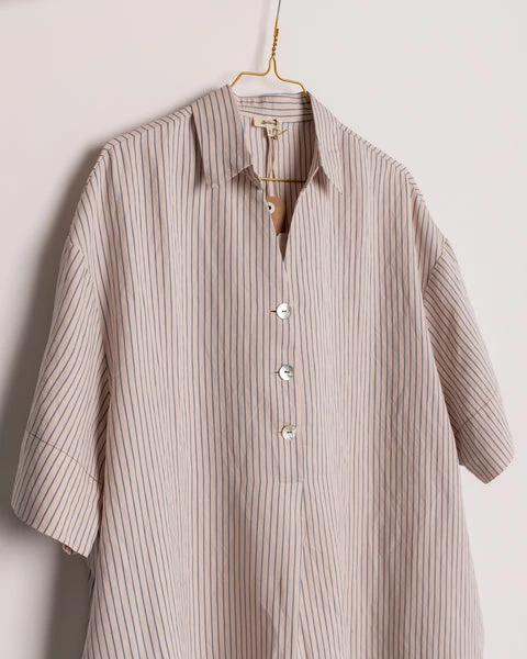 Ein echter bewährter Bellerose-Klassiker. Das Atelier ist ein feminines Kleid mit lockerem Oversized-Schnitt, klassischem Kragen, knielanger Länge und Seitentaschen für zusätzliche Praktikabilität. Es hat all die Leichtigkeit und den Komfort, von dem du träumen könntest, ohne Kompromisse beim Stil einzugehen. Aus Viskose gefertigt, strahlt es lässig-schicke Vibes aus. Trage es mit Turnschuhen oder Sandalen für einen mühelosen Stil, oder wage es, aufs Ganze zu gehen und deine Lieblings-Heels für eine Spritztour herauszuholen! Hemdkragen überschnittene Schultern verdeckte Seitentaschen Perlmuttknöpfe size & fit true to size bequeme Passform Material 90% Viskose, 10% Polyester Artikelnummer Ateliers P1371 Stripe A