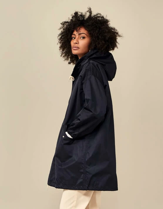 – Oversized parka – Zip front – Drawstring hood – Elasticated cuffs – Navy – 64% Polyester, 36% Cotton – Lining: 100% Polyester – BELLEROSE Sizing: XS – 0 S – 1 M – 2 L – 3 XL – 4 RD Size: XS