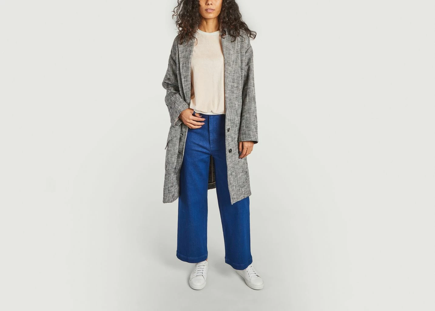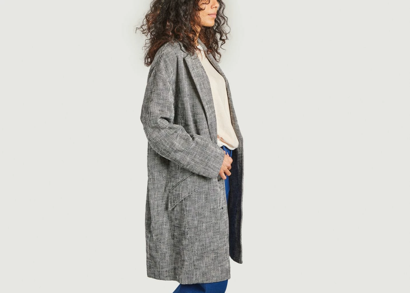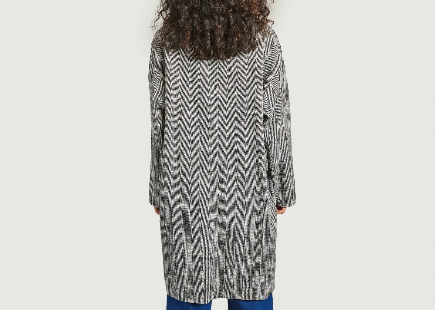 Lightweight grey cotton and polyester herringbone long coat, oversized fit, long drop sleeves, tailored collar, 3-button center front closure, 2 front flap pockets, unlined. Catch the Claire coat from Bellerose, ideal for mid-season! This model with a trendy cut and a timeless pattern will give you a boyish look.