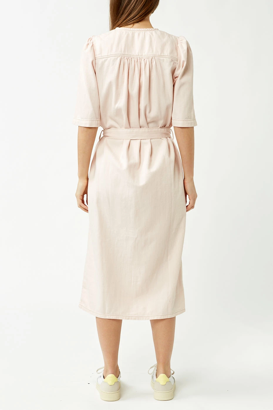 Practical and versatile, the Penn Dress is designed in a relaxed fit, with V-neckline, button front, elbow-length sleeves, contrasting stitches, chest pockets and a self-tie belt to define the waist.