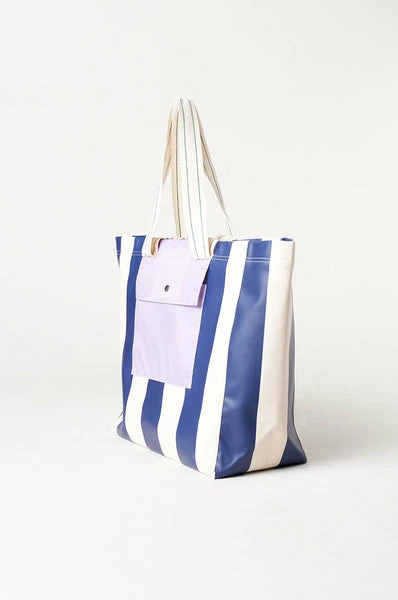 Shaped to a spacious silhouette, the Lormina striped tote bag is an ideal size for the kitchen sink crowd. Crafted in a shiny patent plastic, it’s durable and water resistant with a handy contrasting outer pocket to boot. Sporting a nautical stripe, it’s finished with two sets of handles, so you can carry anything and everything in style. W 40 x H 38 x D 18 cm 100% Plastic Wipe clean. Do not tumble dry. Made in China. BW221826 S0937 STA-S0937