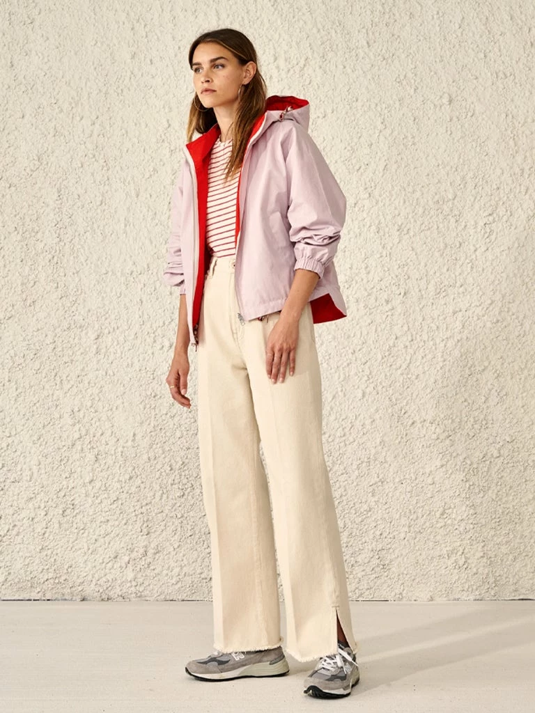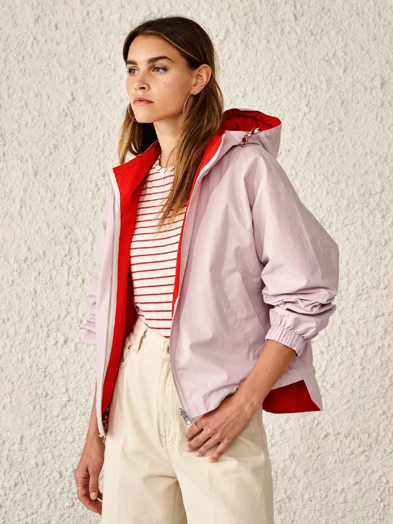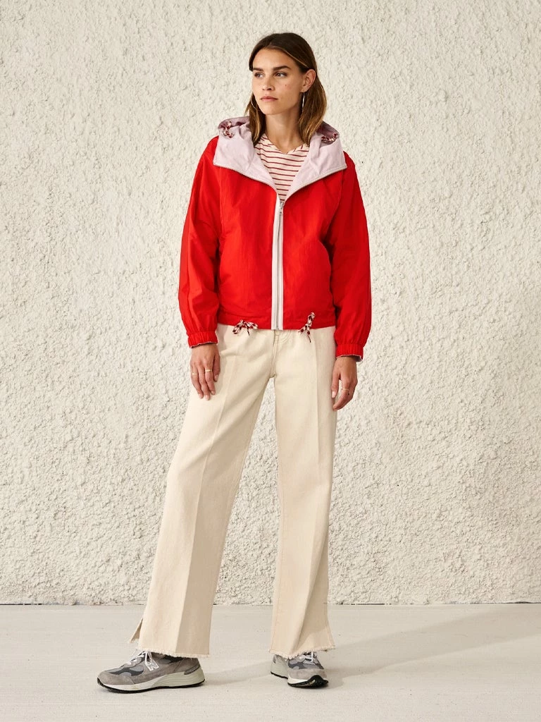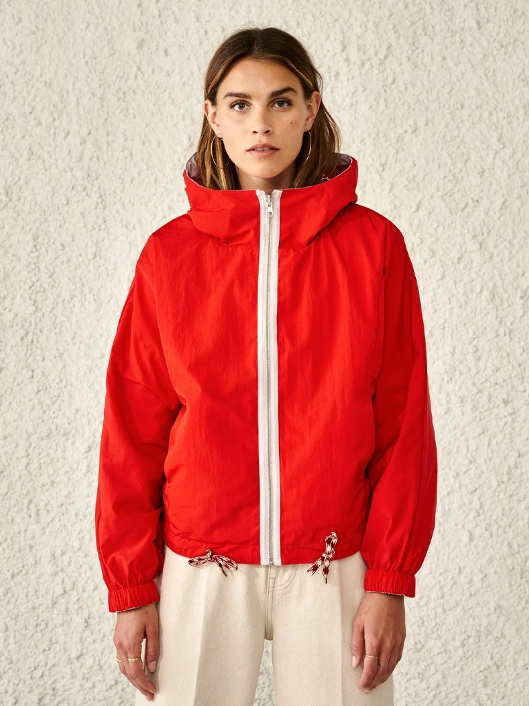 Keep bad weather at bay with this reversible hooded Loud Jacket from Bellerose. Crafted with one side in a cotton blend and the other in a water repellent nylon, it is perfect to enjoy the ever changing spring weather. The jacket is slightly oversized with a cropped boxy cut. Featuring an elasticated waist, contrasting drawstring and zip, elasticated cuffs and waist and a slightly longer length on the back. 72% cotton, 28% polyamide/nylon Lining: 100% polyester/nylon Drawstring: 100% polyester Reversible hooded jacket Water repellent side Elasticated cuffs and waist Contrasting drawstring and zip
