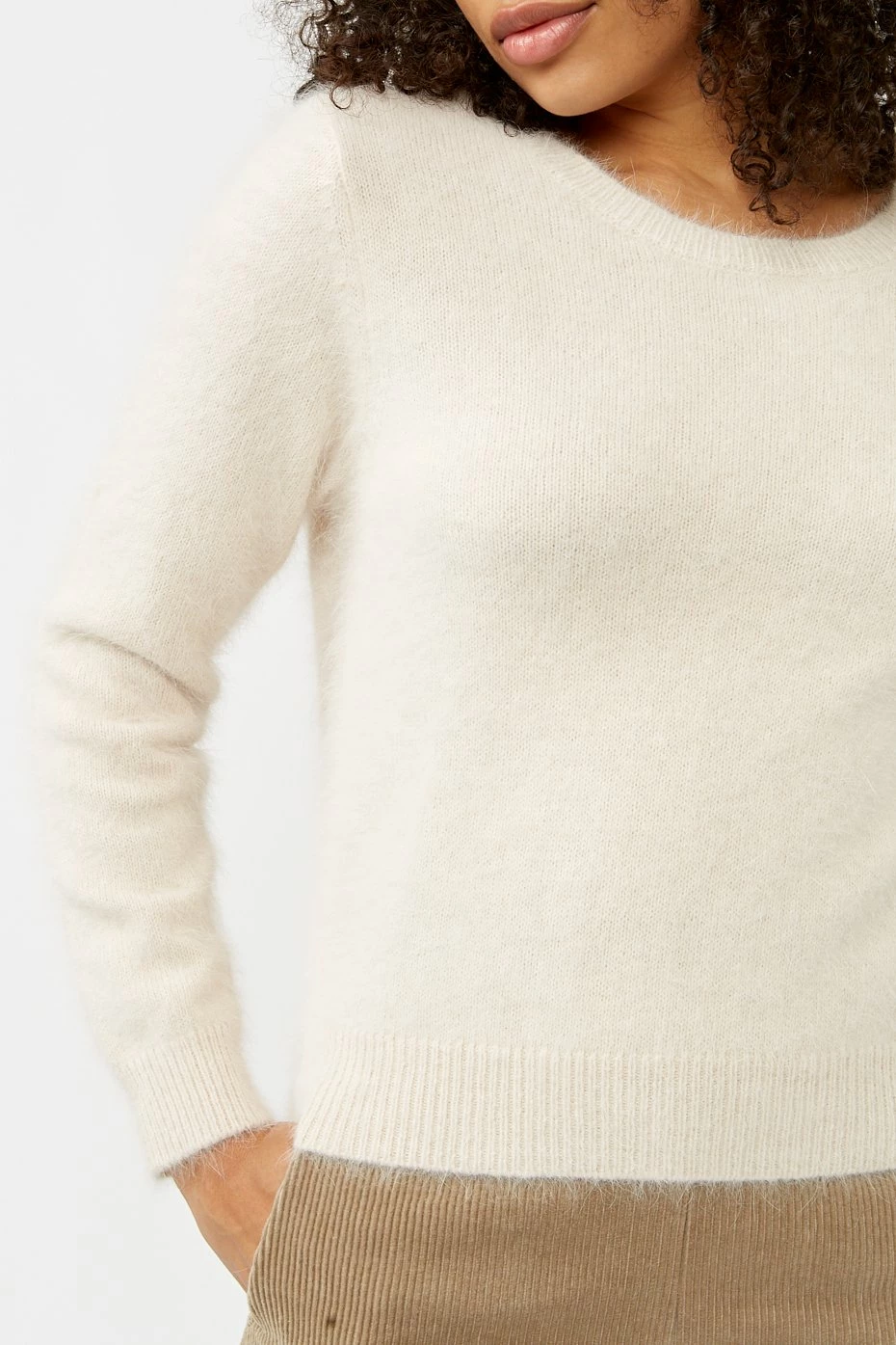 The Datti is a staple from Bellerose in classic winter white, designed to keep you cosy throughout the year with a fluffy, luxurious Angora blend. It features a round neck, slim fit and ribbed edges. Bellerose was established in 1989 in Belgium. The brand was created out of a love for vintage styles, using high quality fabrics to create durable, long lasting pieces with playful and feminine touches found throughout the collection.