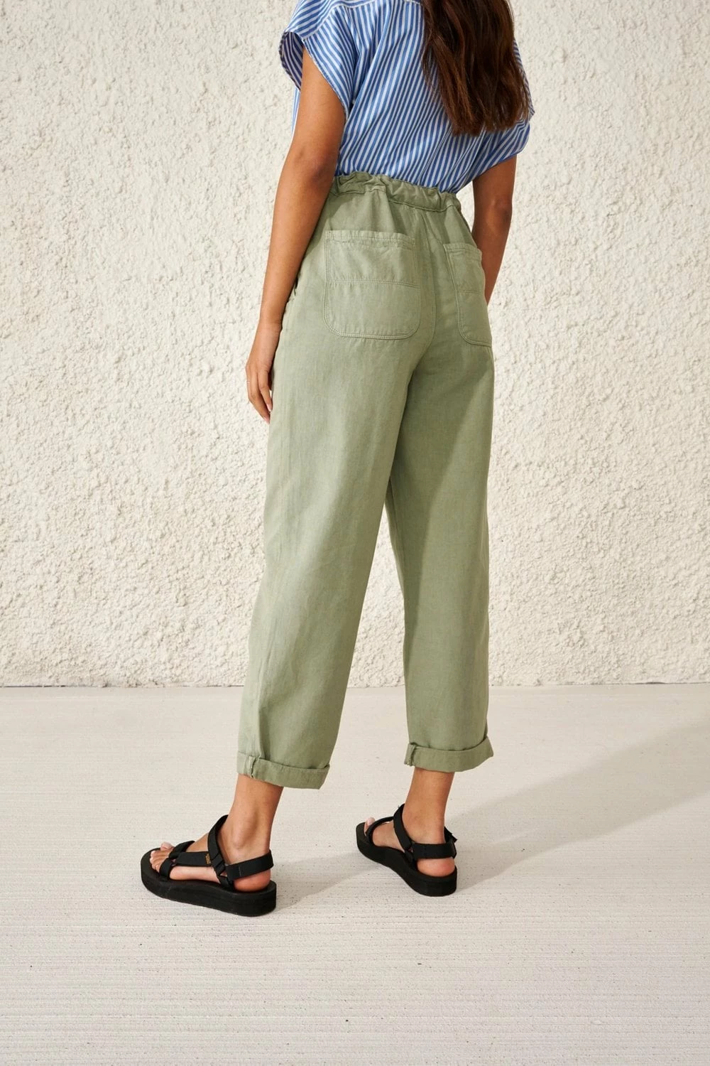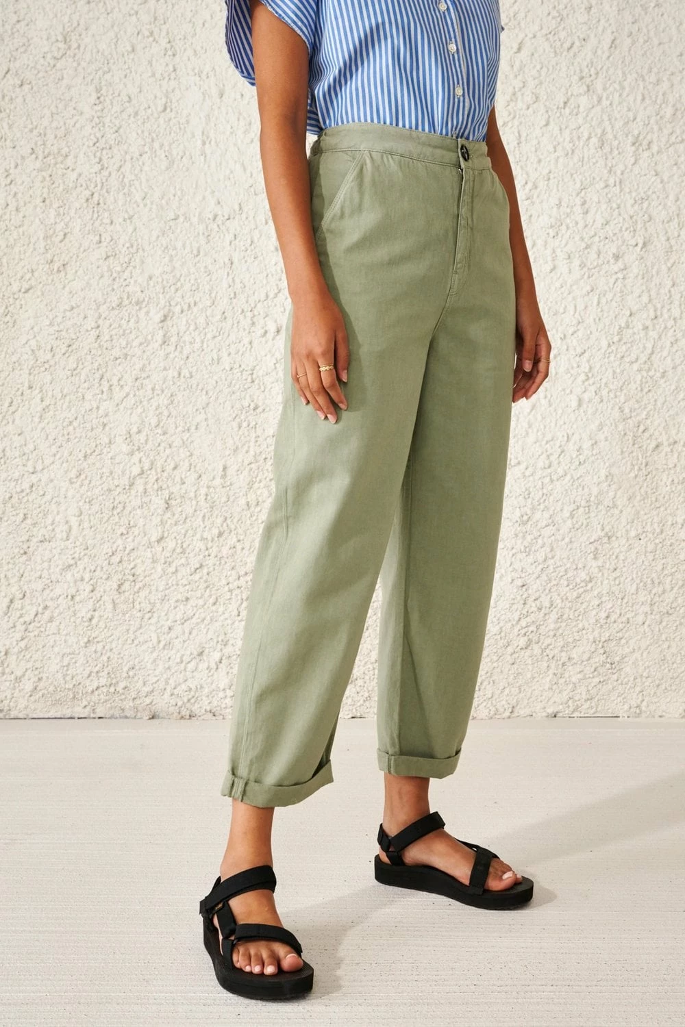 Paso Pants Veronese High Waisted Relaxed Tailored Front Ankle Length Cotton and Linen Blend 85% Cotton 15% Linen Dry Clean 43045