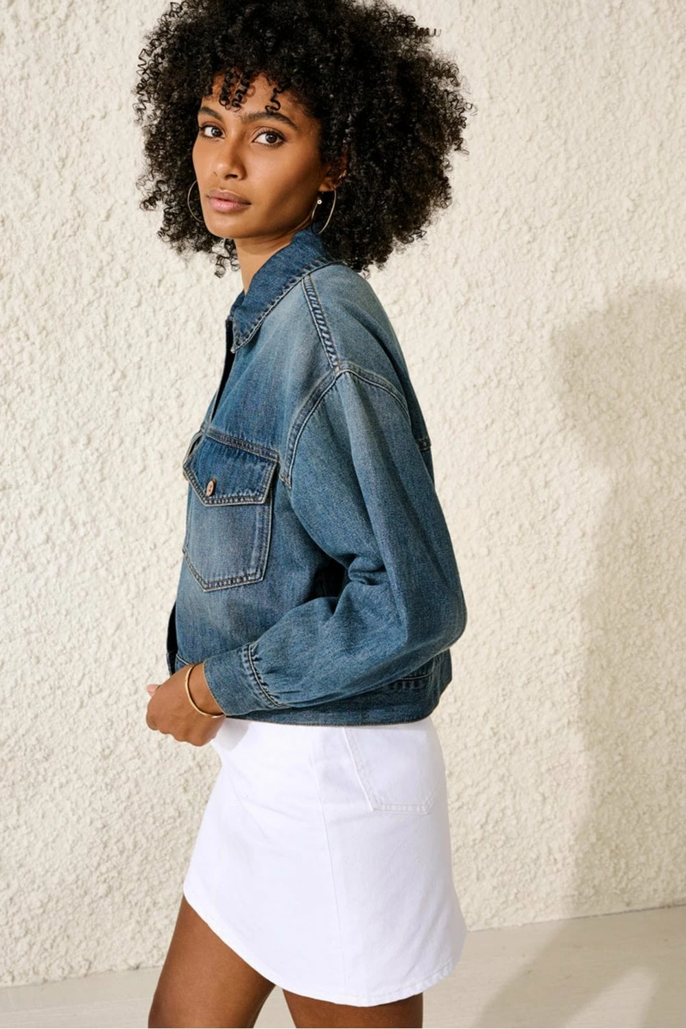 Jacket Denim Oversized fit 100% cotton denim Puffed sleeves Metal buttons Pockets