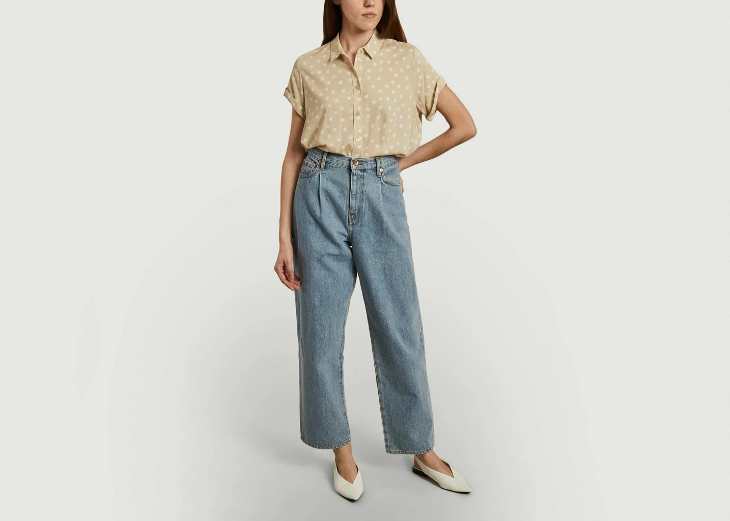 Jeans made of cotton in raw colors. Gone are the days of tight jeans, we opt for a comfortable jean with the Peggy jeans. High waist, front darts and wide legs, they show an 80’s trend without being extravagant, and they flesh out the figure without weighing it down. Don’t hesitate to wear these pretty Peggy jeans by Bellerose. Wear them a little longer with a feminine sweater and a pair of heeled boots for extra height.