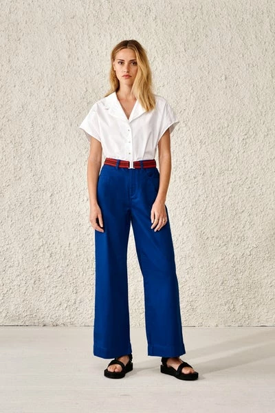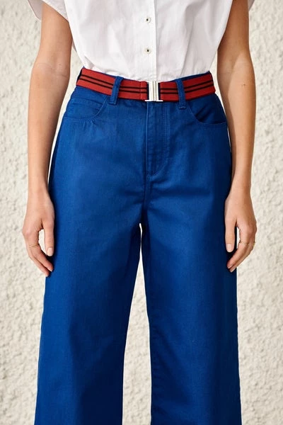 With a high rise, flat front, and flared leg, our PENHA are the perfect pants for a casual-not-too casual look. Crafted from broken twill satin in 100% cotton, they feature a hip-hugging fit with back pockets that sit high in the back for a flattering look. Wear them with anything from a simple white shirt to a light cotton top tucked in the waist-band. High rise flat front pant 100% cotton Hip hugging Flared legs 5-pocket style Fabrics and Washing 100% cotton Pocket lining : 100% cotton Made in Tunisia Machine wash at 40°C or lower Do not bleach Do not tumble dry Iron at medium temperature / Heat 150°C Dry clean