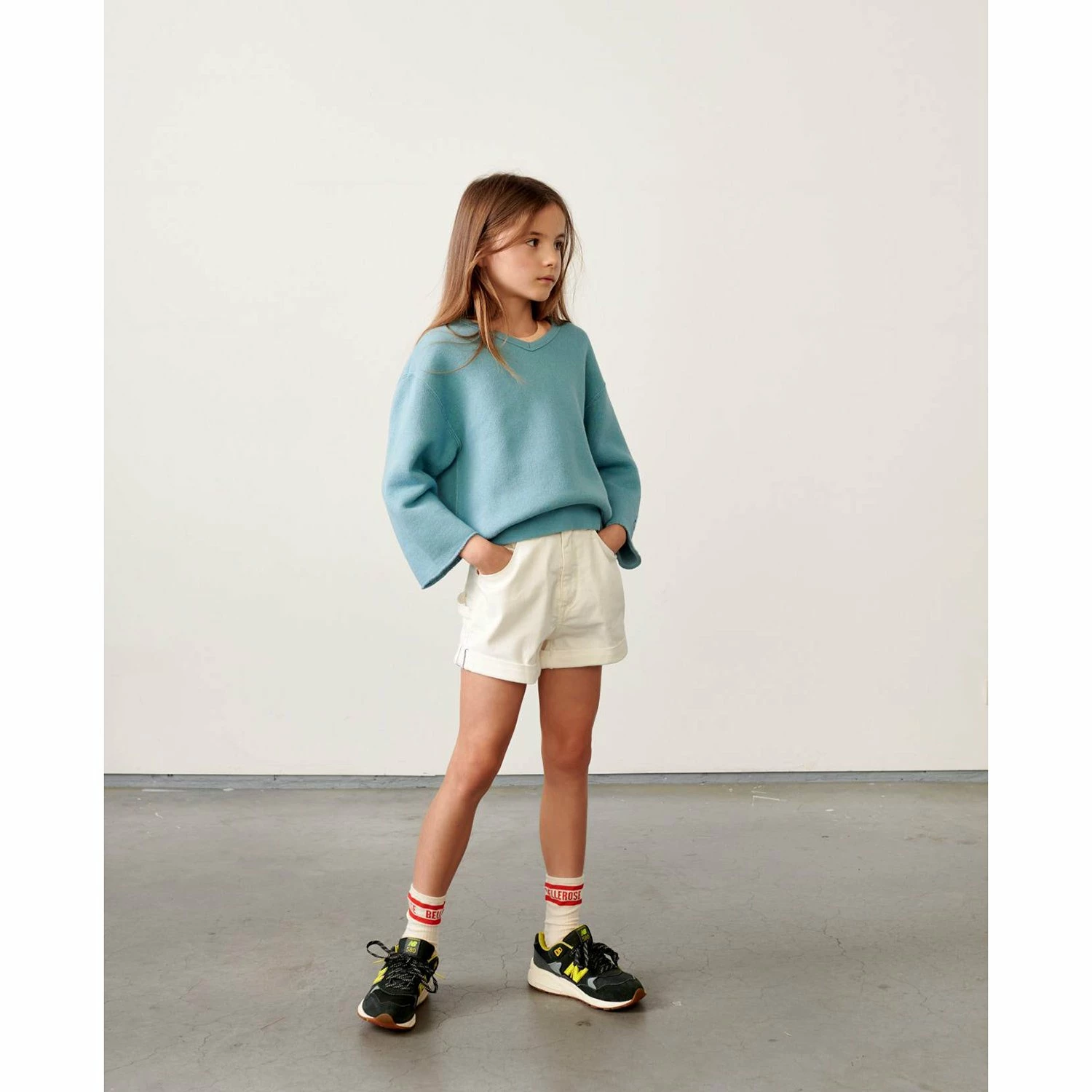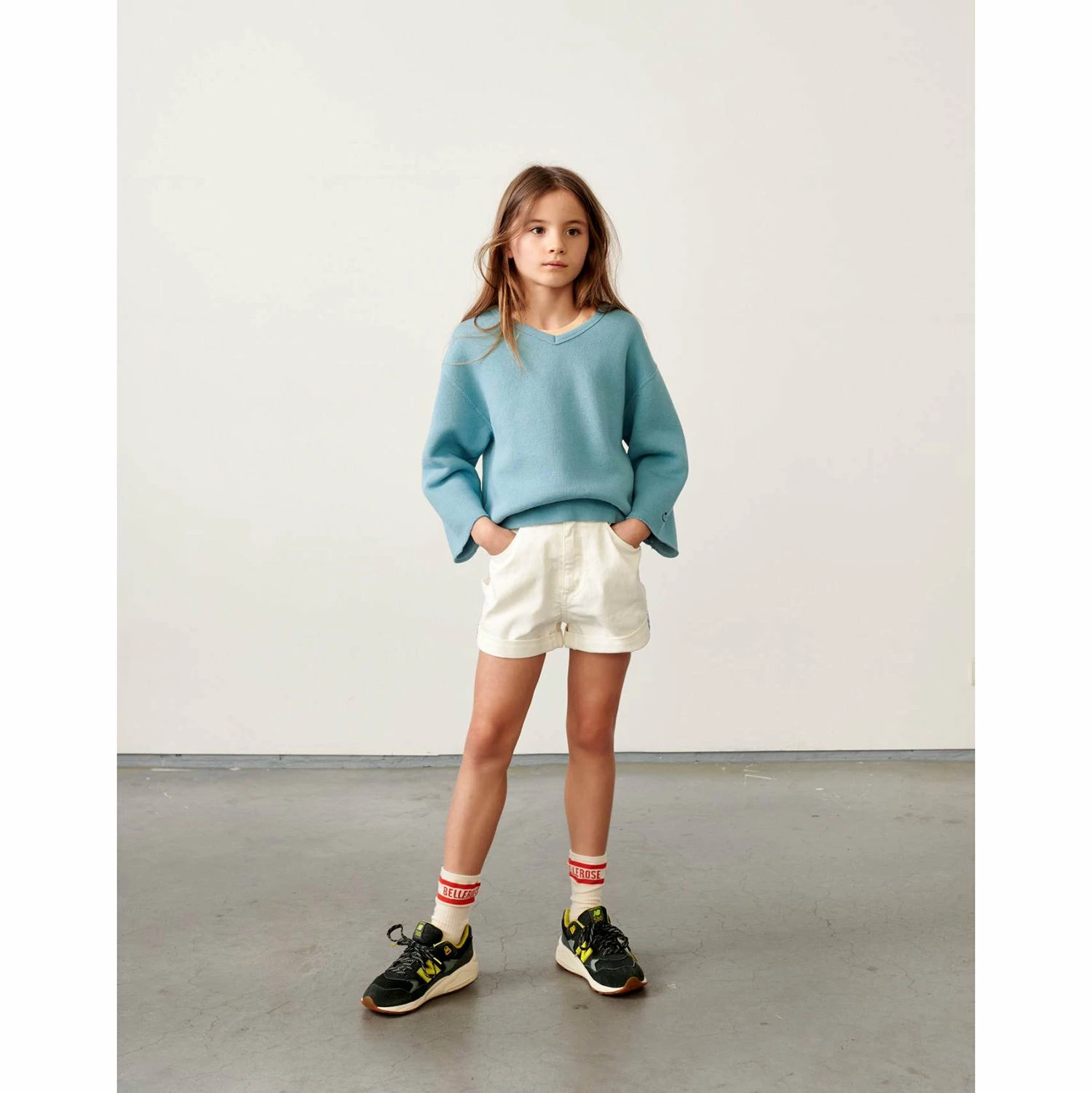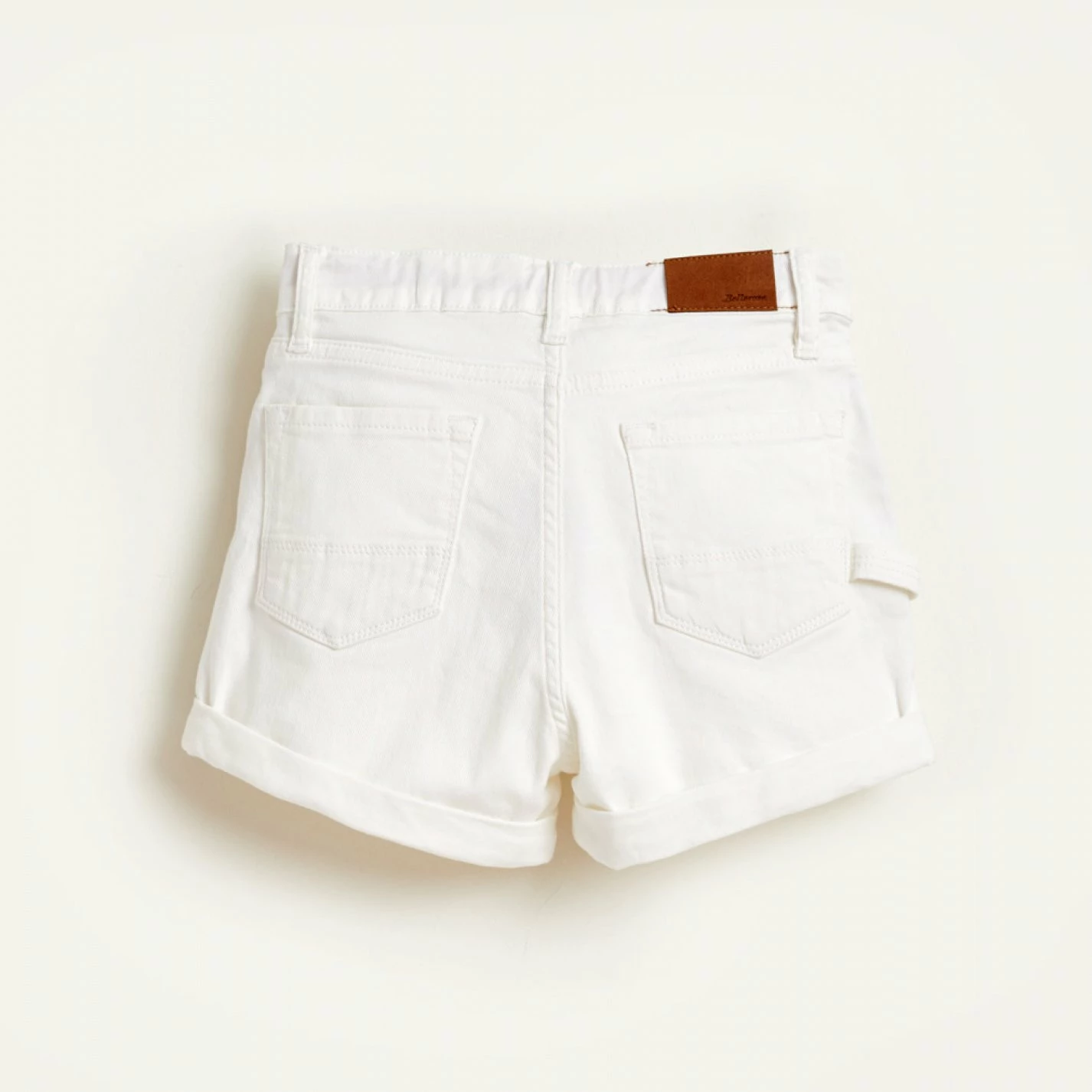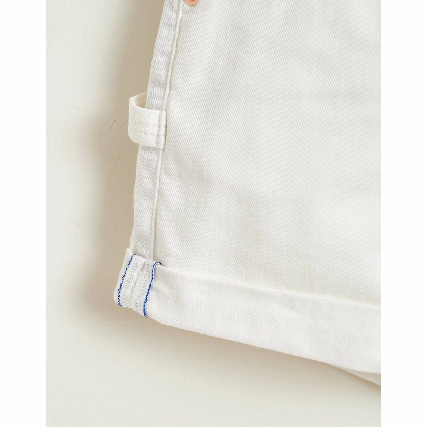 Relaxed shorts to run free! Don’t be surprised if you need to get more than just one pair of our PETITE shorts. They are the ultimate summer shorts with a boyfriend cut, rolled bottom, high rise and a few details like the utility strap and metal rivets, plus our adjustable elasticated waist so she can grow with them. This version in ecru denim will be perfect with any summery colour tees or shirt she fancies. Details: Relaxed shorts, High rise, Rolled bottom, Ecru denim, Cotton blend, Adjustable elasticated waist Composition: 98% cotton, 2% elastane Colour: Off-White