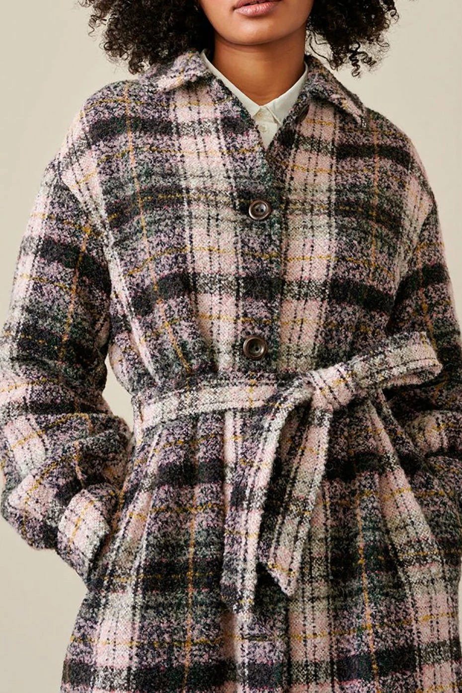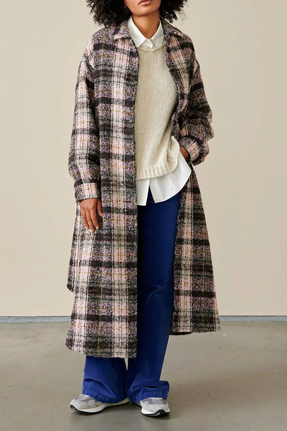 This Pink Vitto Check Coat by Bellerose is the statement piece that your winter wardrobe has been missing. This long coat is crafted from a soft blend of fabric with wool and alpaca for added warmth, finishing in a cute checked colour scheme.