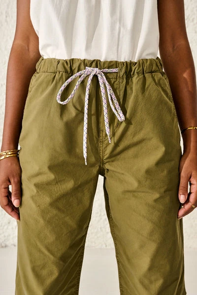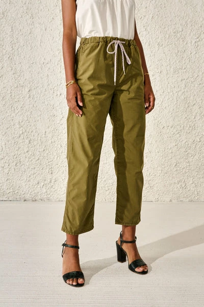 The kind of pants you’ll crave on a hot summer day. Easy-going and easy-fitting, these PIZZY pants will become your best friend as soon as the temperature rises. Elastic waist with a contrasting drawstring, tapered leg, side pockets, and patch pocket at the back. ABRICS & WASHING 100% cotton Pocket lining : 100% cotton Drawstring : 100% polyester Machine wash at 30°C Do not bleach Do not tumble dry Iron at low temperature / Heat 110°C Dry clean P normal