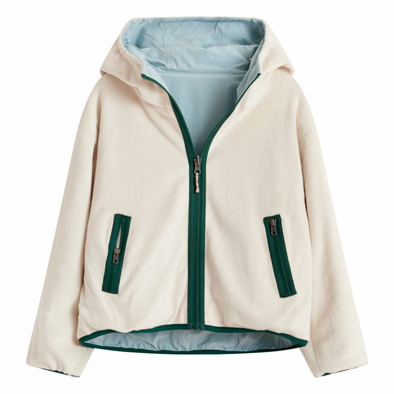 Fabrics : 70% polyester, 30% polyamide/nylon Details : Reversible Rain Coat, Zip-Up, Hood, Loose Fit Size of photographed item: 10 years Colour: Pool