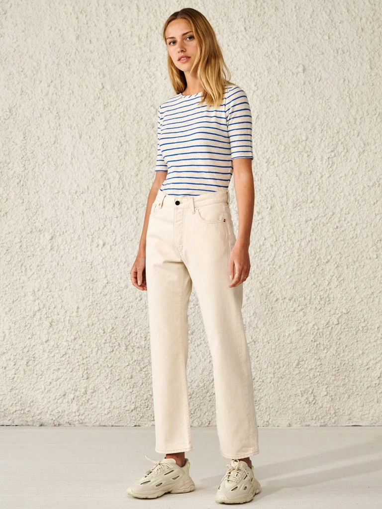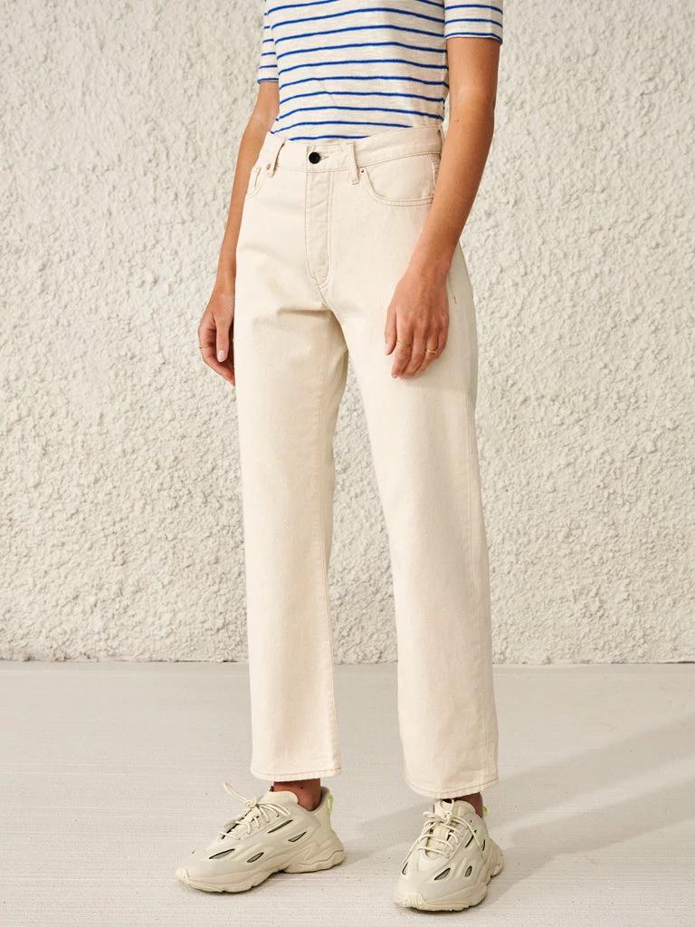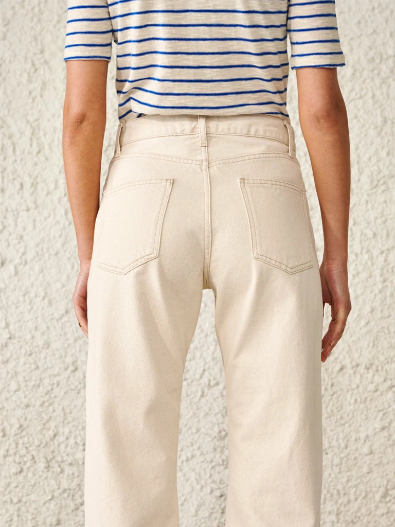 The Popeye Jeans from Bellerose offer a high waisted, cropped fit that pairs well with anything. Crafted from beautiful Ecru denim, these jeans are easy and timeless – an ideal wardrobe staple. 100% Cotton Ecru denim Zip-fly and button closure High waist Five pockets Belt hoops