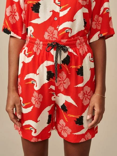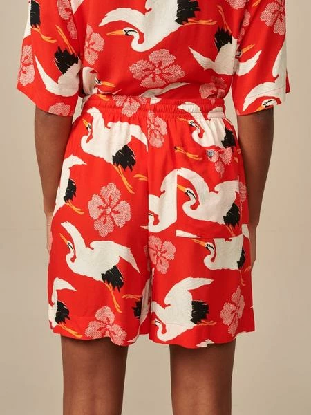 Lovely summer shorts with an elasticated waist, contrasting drawstring and flowy viscose. You can wear them high on the waist or oN the hip for a relaxed look. This Japanese inspired print with white cranes on a red background is an eye catcher. Why not match it with the matching Poppy Shirt from Bellerose. Sizing: 0 (XS) 1 (S) 2 (M) 3 (L) 4 (XL)