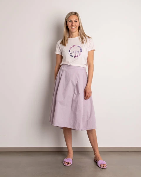 Du bist bereit, deinen Frühling-Sommer-Look zu starten? Hier kommt der Pacific Skirt, diesmal in einer Version, in die man sich nur verlieben kann. Hergestellt aus reiner Baumwollpopeline, die diesem klassischen Bellerose-Kleidungsstück einen modernen Touch verleiht, zeigt es einen weichen Lavendelton, der perfekt für pastellfarbene und farblich abgestimmte Looks ist. Kombiniere den Rock mit einem einfachen Baumwoll-Tanktop. clean und unifarben hinten etwas länger elastischer Bund Key-Piece size & fit true to size Midi-Länge Sarah ist 1,77m groß und trägt Größe 2 Material 100% Baumwolle Artikelnummer Pacific P1460 Iris