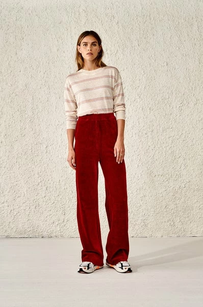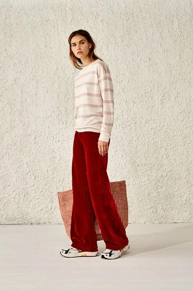 The Senia tee is our everyday hero. Cut from 100% linen, it features a relaxed cut with dropped shoulders and contrast ribbed edges for that little extra touch. – Light peach base with pink and navy stripe detail – Elasticated trims – Long sleeves – Round neckline – Regular fit – Minimally sheer.
