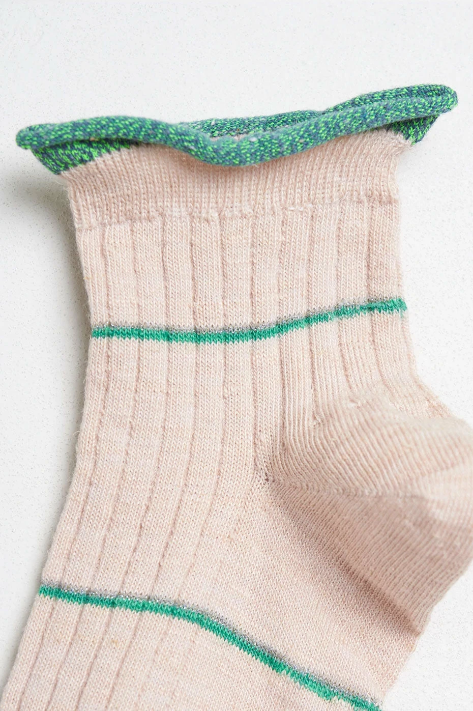 Believe it or not, socks maketh the outfit, especially ones like the Filin pair from Bellerose. They’re made from a lightweight blend of stretch and linen, and are shaped to sit at the ankle. The roll-top trims and stripe design just add to their overall charm.