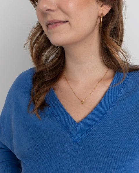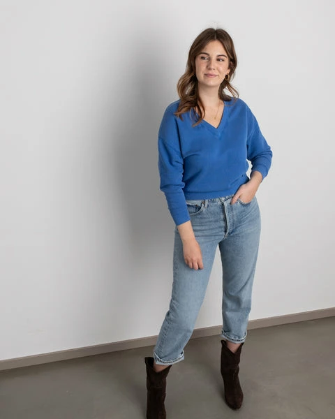 Wir haben den perfekten Look für Quality Time! Mache dich mit unserem Fellow-Sweatshirt auf den Weg zu einem Yoga-Kurs oder entspanne einfach zu Hause. Dieses sportlich-schicke Basic in leicht ausgeblichenem khaki ist die feminine Ergänzung für deine Freizeitgarderobe. Da es aus weichem Fleece aus einer Baumwollmischung besteht, ist es sehr bequem und der V-Ausschnitt, die gerippten Kanten, die überschnittenen Schultern und der entspannte Schnitt sorgen für einen überzeugenden Look. V-Ausschnitt überschnittene Schulterpartie gerippte Kanten Bellerose-Stickerei size & fit true to size verkürzter Schnitt Material 75% Baumwolle, 25% Polyester Artikelnummer Fellow T1465 col sea