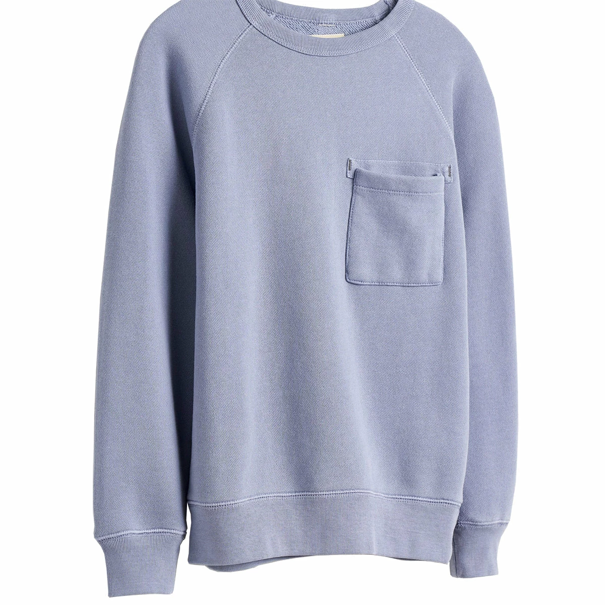The classic sweatshirt becomes that much more practical with the addition of a patched pocket. Timeless and comfortable, the Fiuk sweatshirt from Bellerose features raglan sleeves, ribbed edges, and a crew neckline. It is crafted in organic cotton fleece and comes in bright colors he’ll love to wear all season long. Details: Classic sweatshirt | Crew neck | Raglan sleeve | Ribbed details | Matching grosgrain on the pocket Colour: Drizzle Composition: 100% organic cotton Care details: Machine wash at 30°C or lower | Do not bleach | Do not tumble dry | Iron at low temperature / Heat 110°C | Do not dry clean